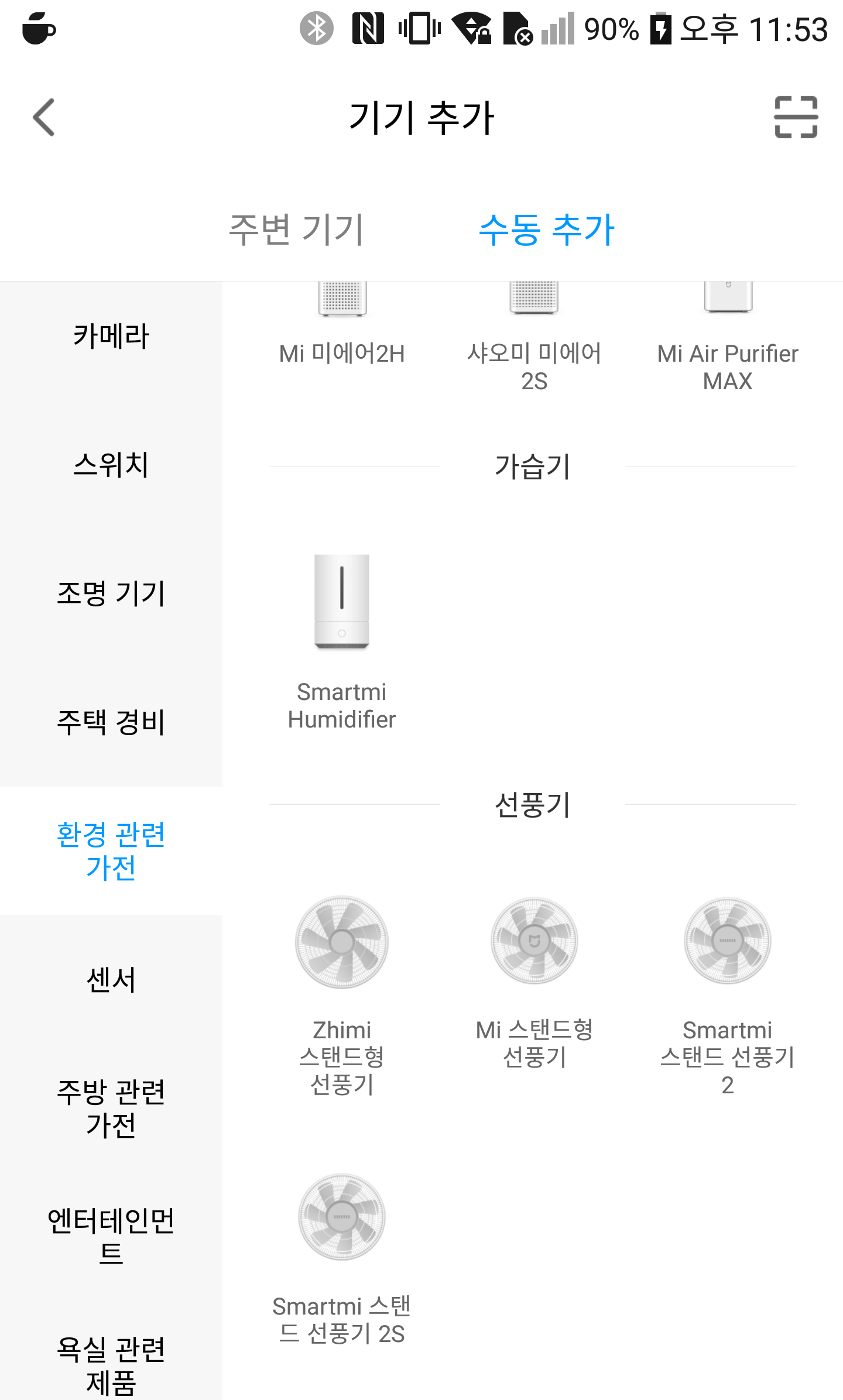 4. 가입 완료 후에 원하는 기기를 추가하면 된다. 아래와 같이 기기를 브라우징해서 찾아가거나, 기기이름을 검색하거나... 등등 해당 기기를 찾아준다. 본인 거는 스탠드 선풍기 2다.