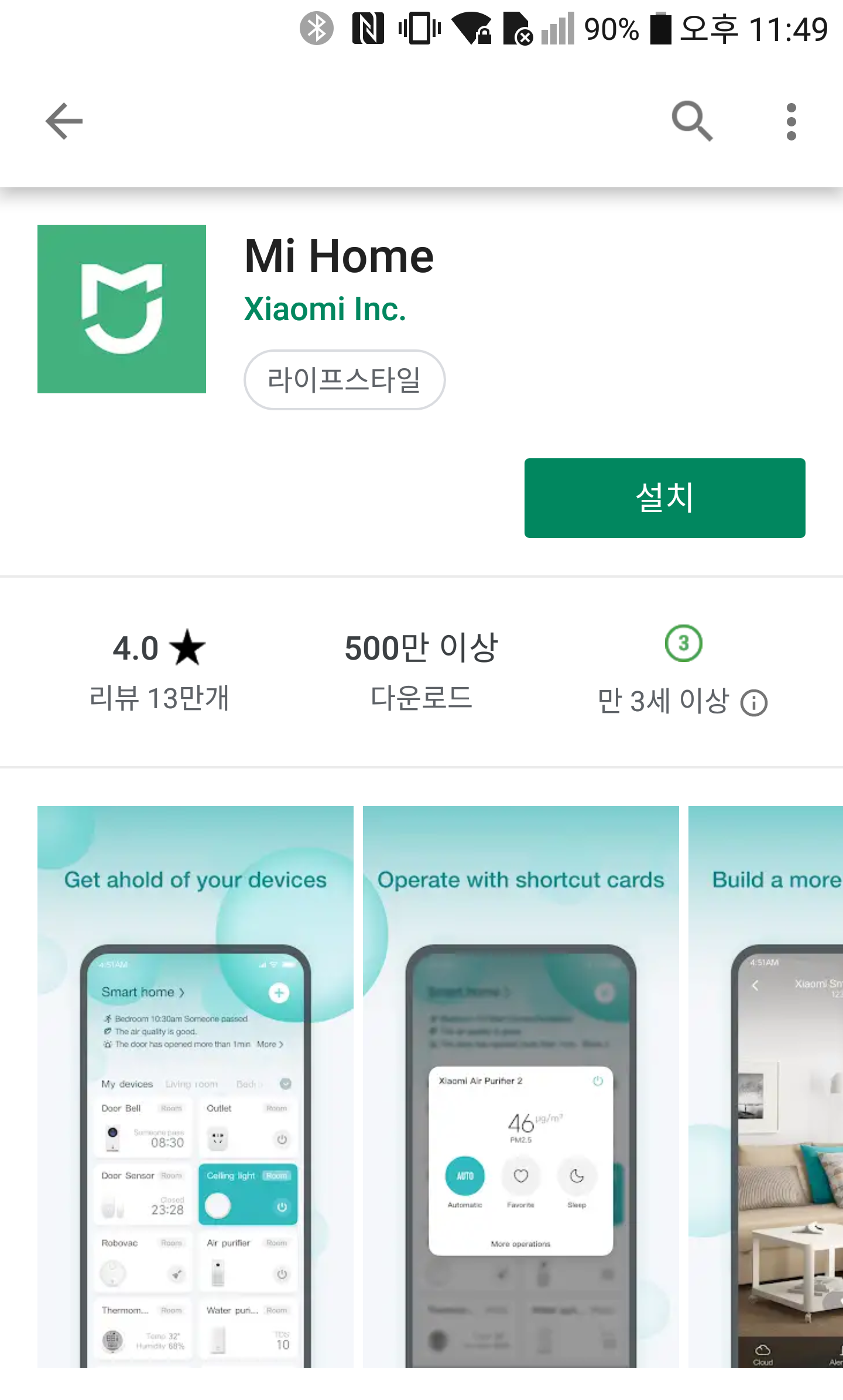 1. '미홈'으로 어플 검색하고 다운 받아서 설치하기.