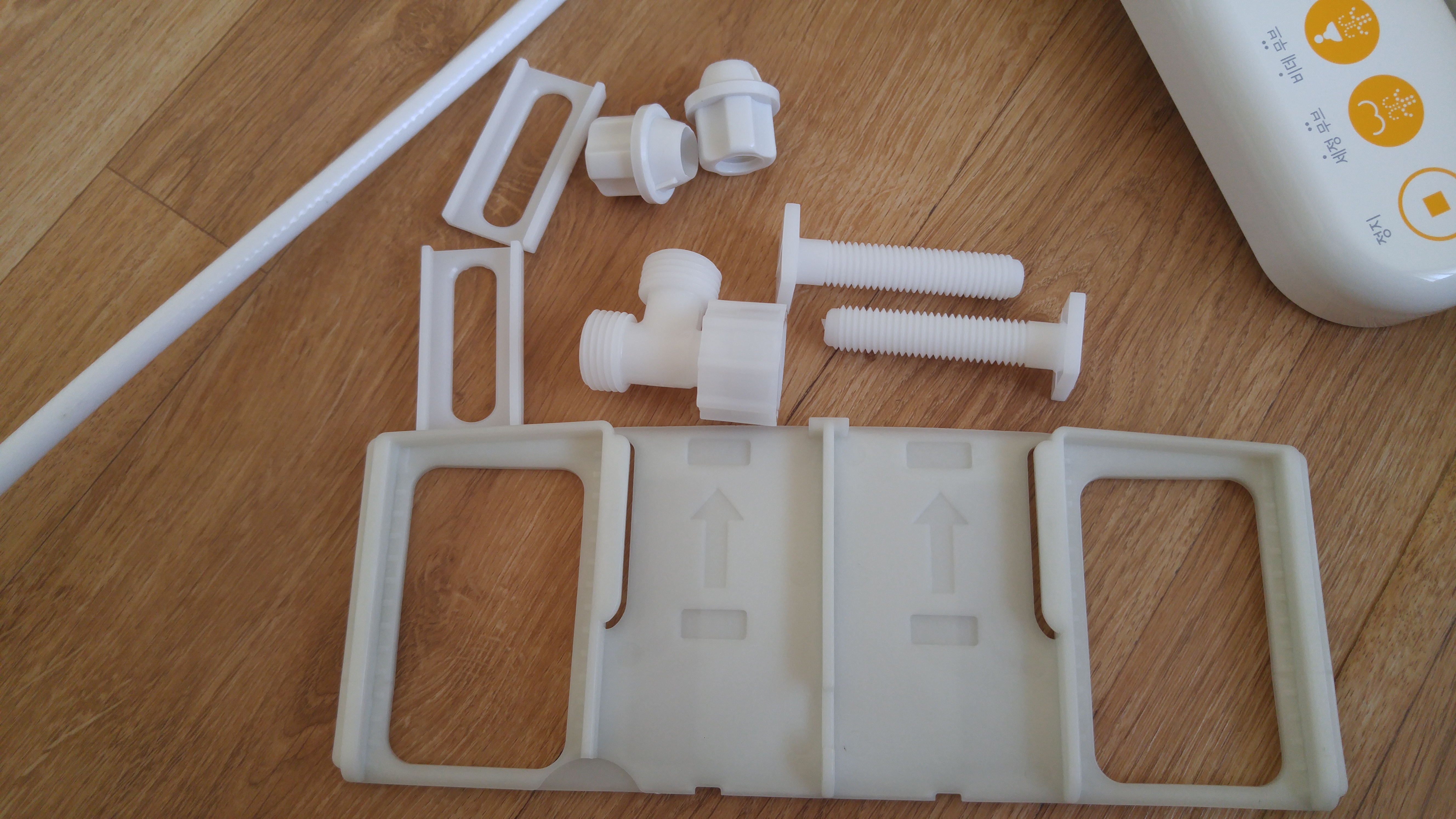 - 제공된 부품이 딱 맞도록 되어 있어서 볼트 너트 등만 잘 풀리면 설치하는 것은 그리 어렵지 않다. 연결된 부분을 너트를 돌려서 빼준 후(물론, 물을 잠궈서 물이 나오지 않도록 먼저 한 다음), 제공된 플라스틱 부품을 연결해주면된다. 물론 금속 부품이 아니어서 좀 아쉬웠다. 내구성이 좀 걱정되었기 때문이다. 분명 오래쓰다 보면 수압 때문에 조금씩 부품이 늘어질테고 한 2년 후에 조금씩 물이 샐 것 같았다.