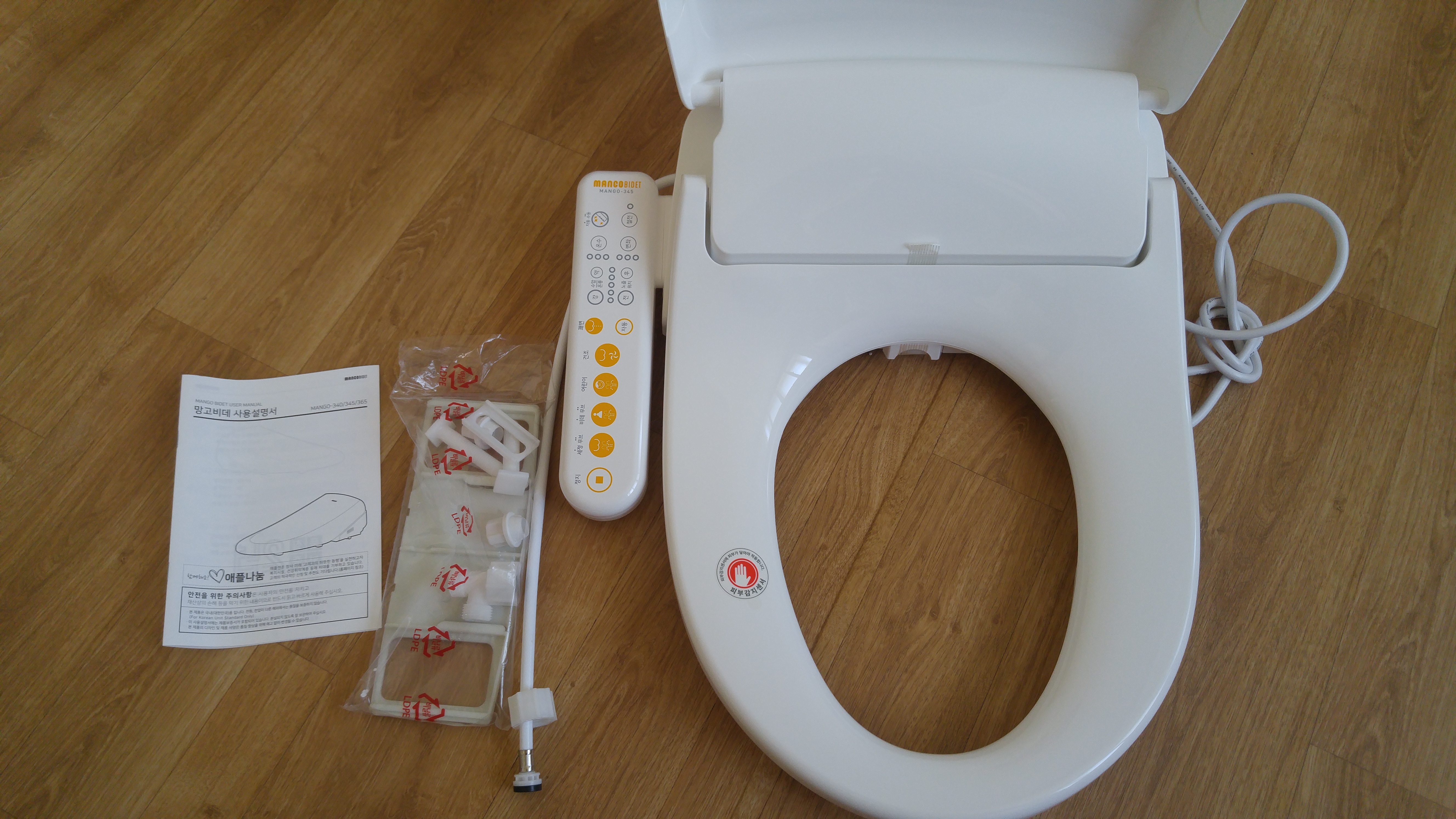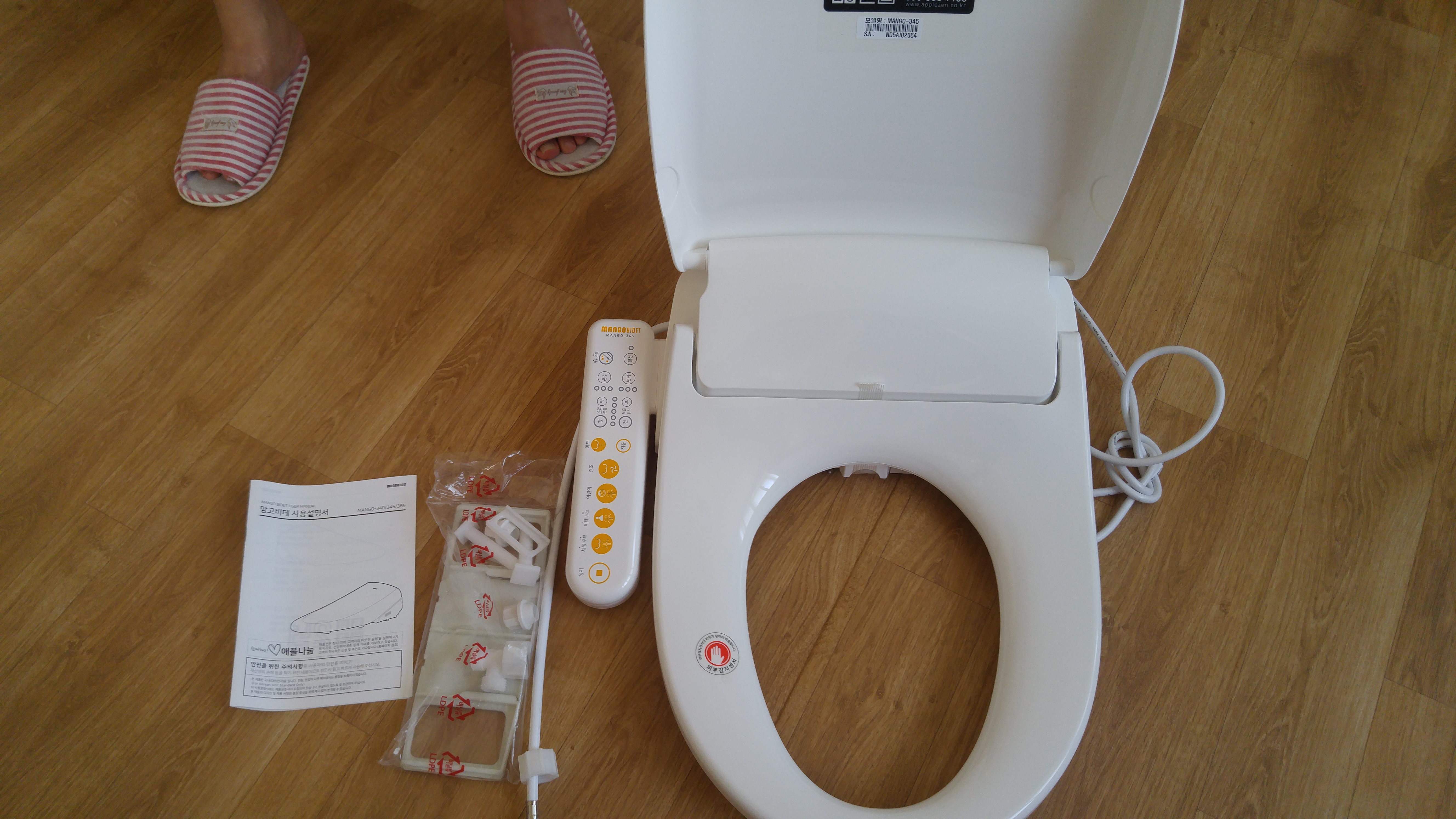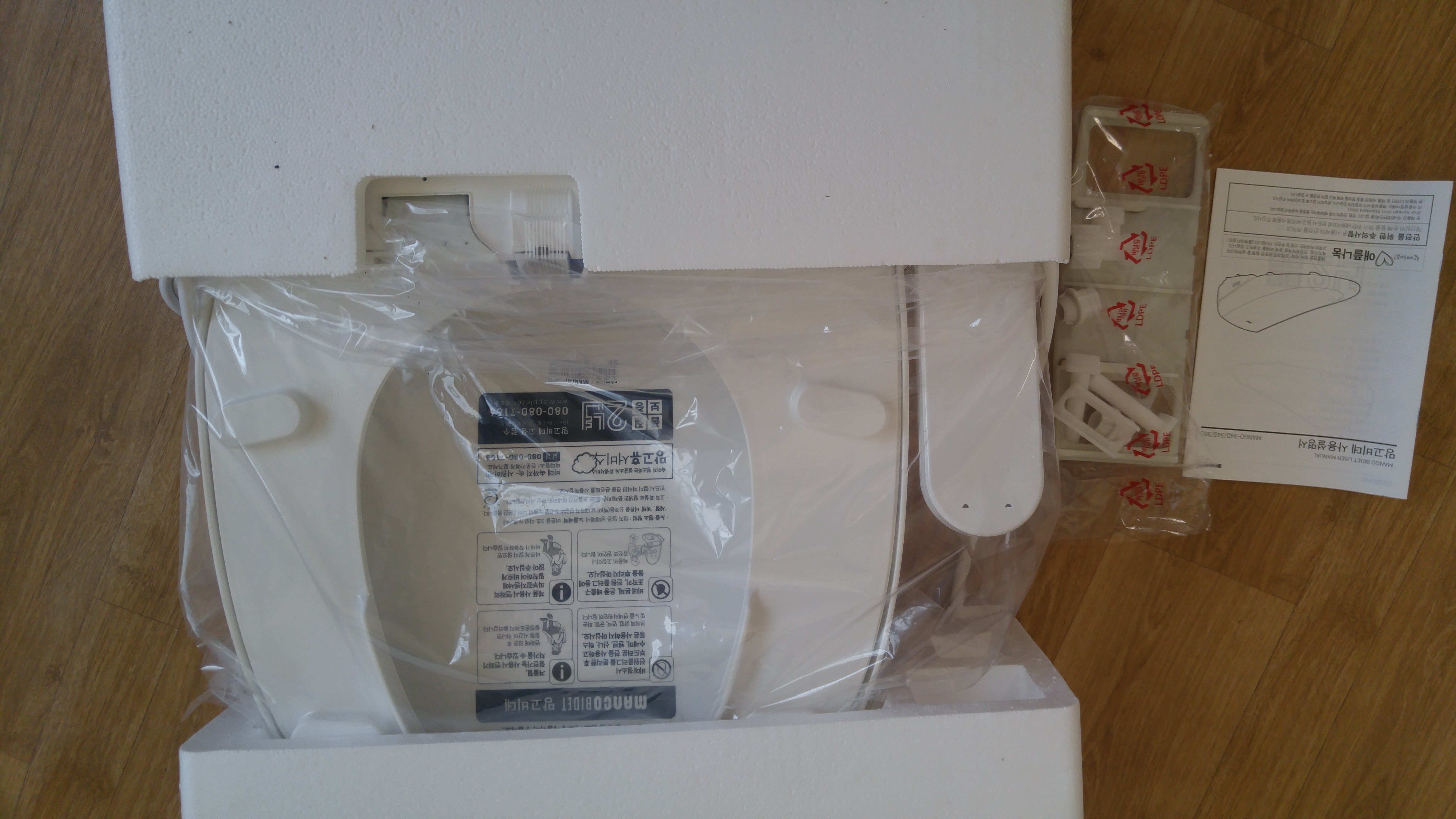 박스를 까보니, 내가 주문한 비데가 맞네. 뭔가 뜯어본 것 같기도 하고. 생산된 바로 그 제품이 맞나 몰라. 요즘은 박스 포장이 뭔가 뜯어본듯하긴 하지만... 제품은 새제품이 맞아 보였다. '리퍼비시'가 아니길(가격이 싸서, 걱정이)...