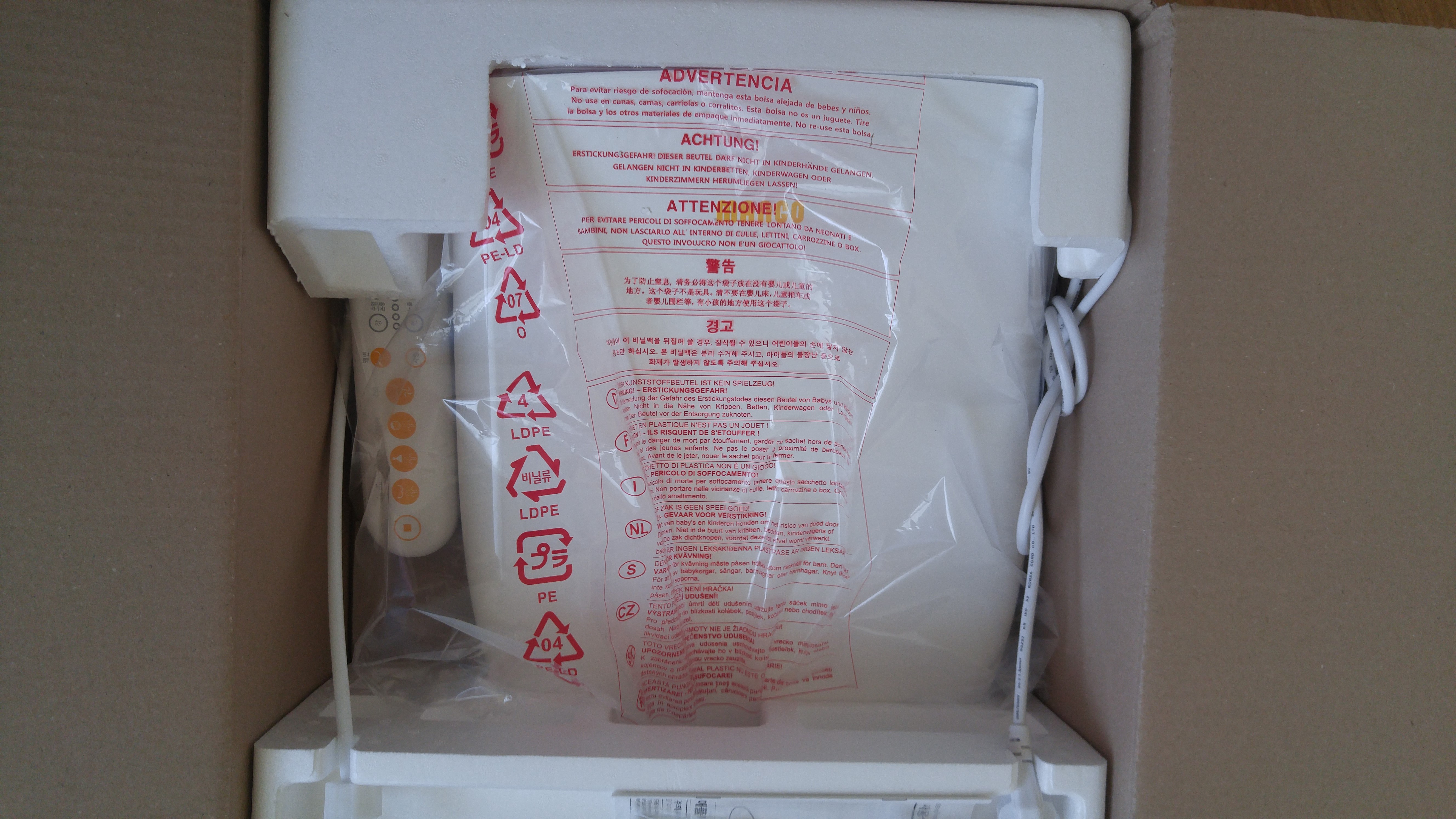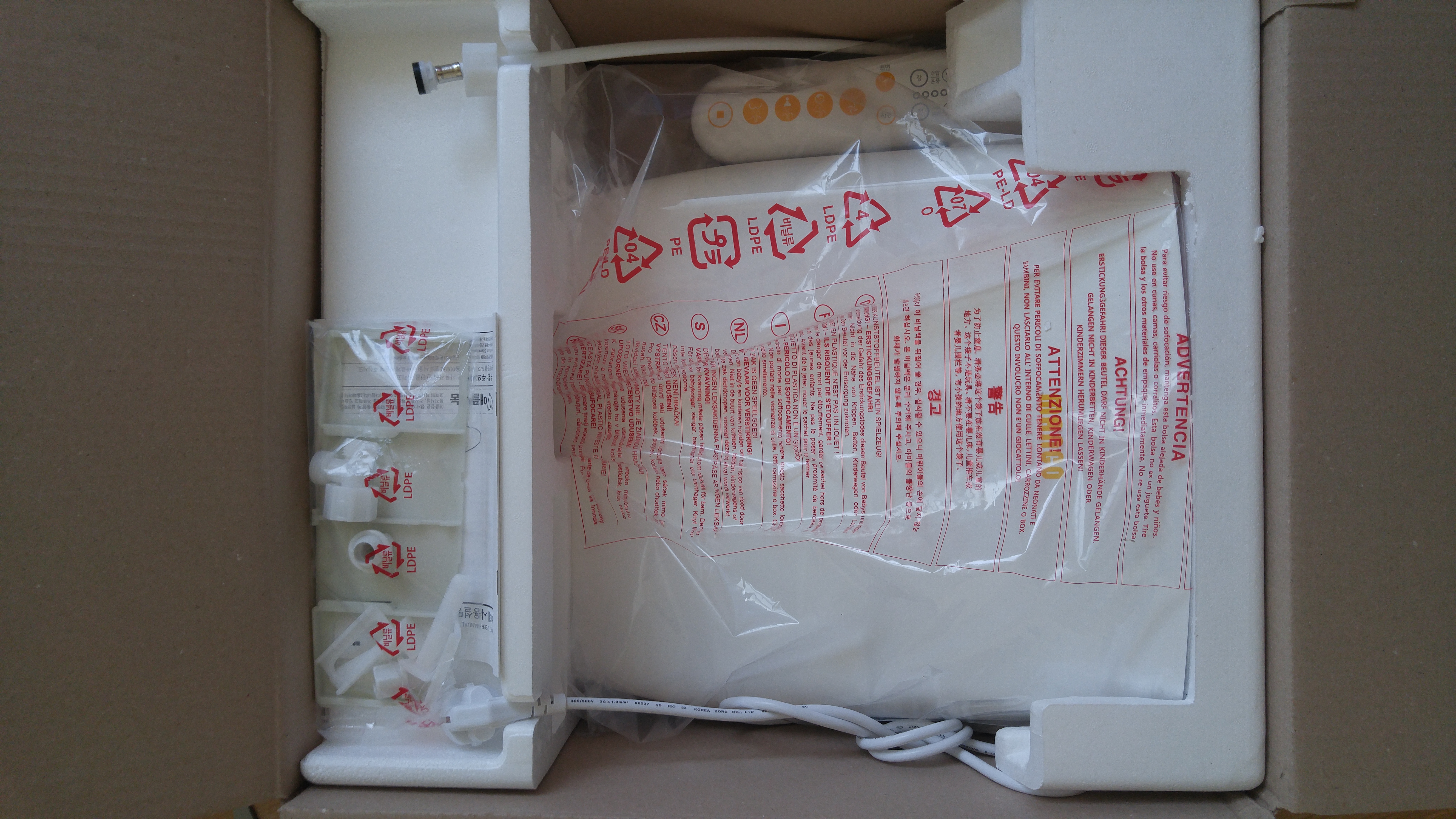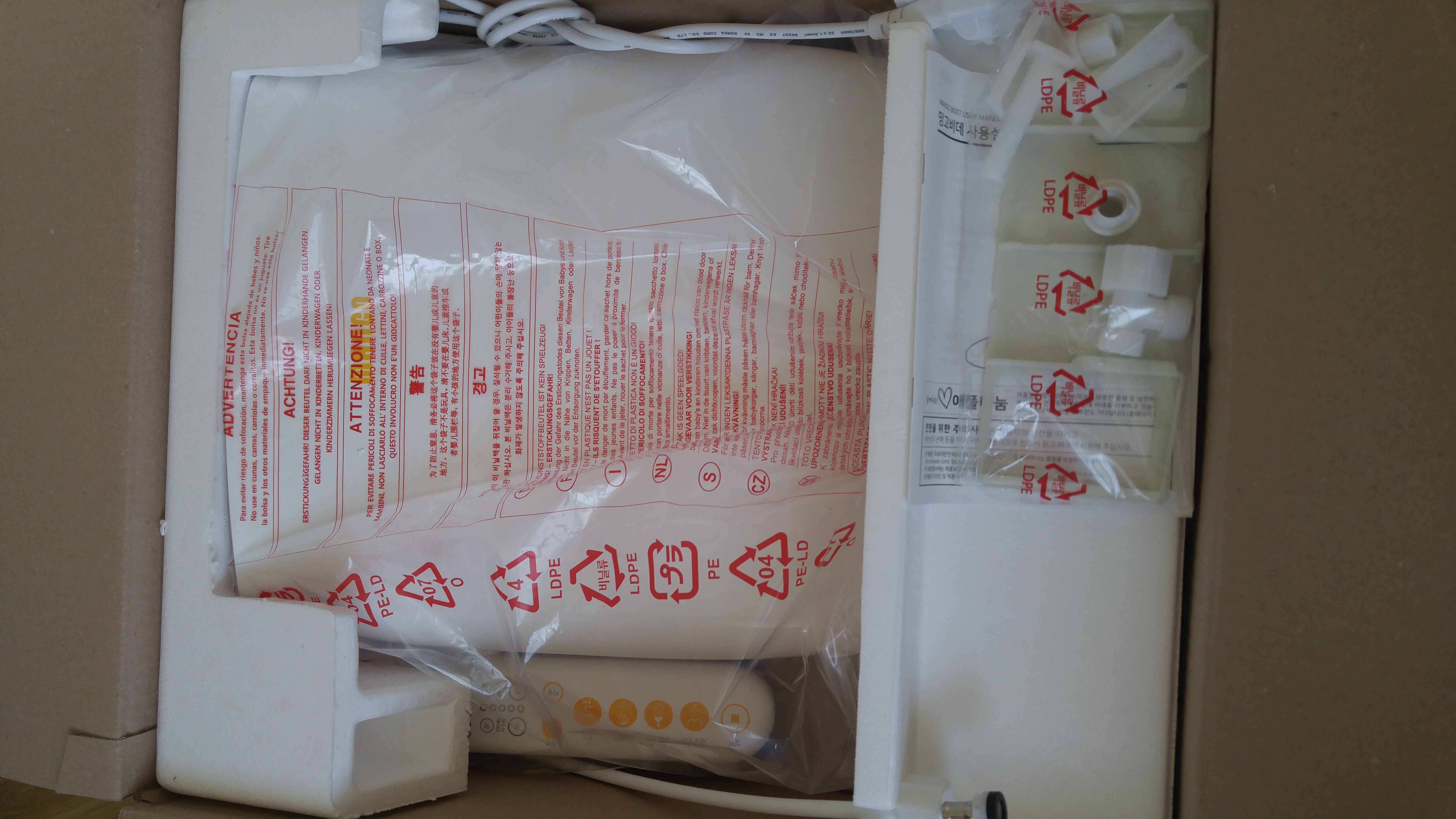 박스를 까보니, 내가 주문한 비데가 맞네. 뭔가 뜯어본 것 같기도 하고. 생산된 바로 그 제품이 맞나 몰라. 요즘은 박스 포장이 뭔가 뜯어본듯하긴 하지만... 제품은 새제품이 맞아 보였다. '리퍼비시'가 아니길(가격이 싸서, 걱정이)...