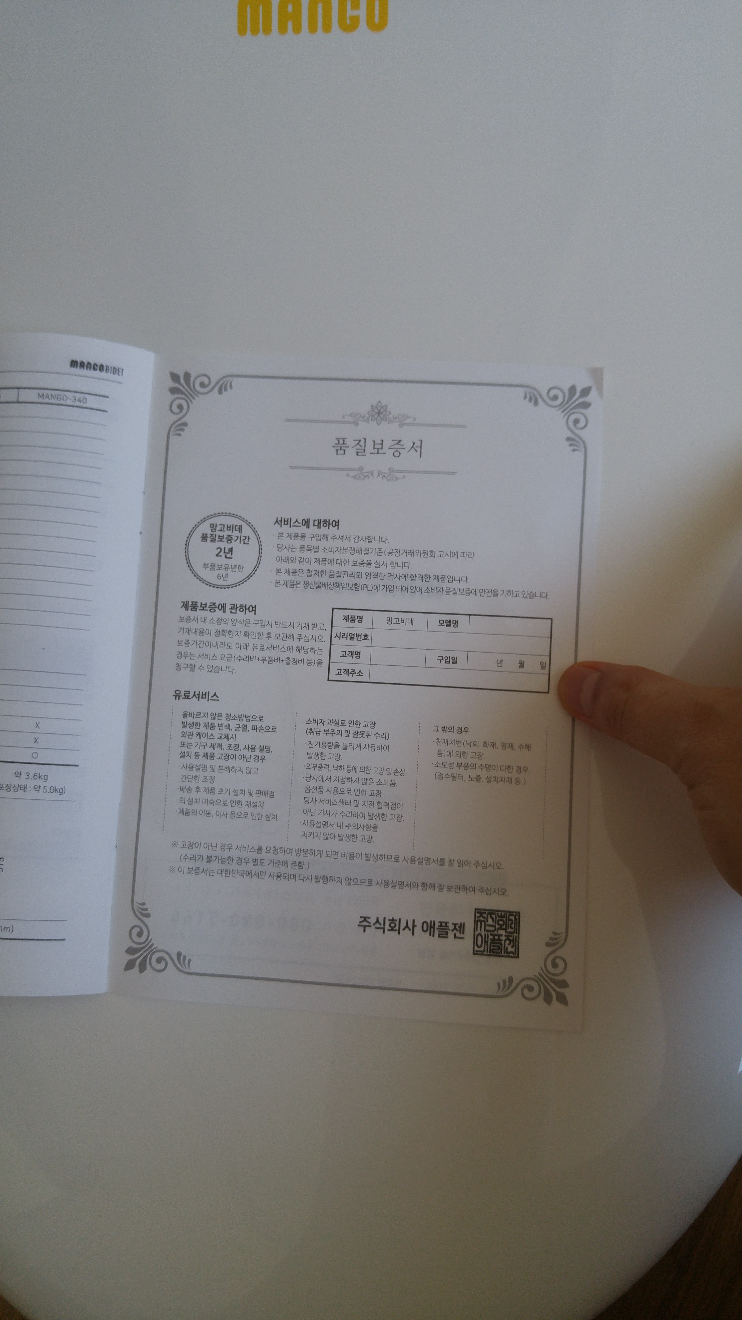 설명서와 보증서도 한번 읽어줬다. 요즘은 구매일이 딱 나와서(신용카드 결제하면 더욱 더) 굳이 저런 보증서는 필요 없는 것 같다. 요즘은 증빙하기가 쉬워서 말이지. 어쨌든 이제 보증 기간 2년이 시작된 거다.
