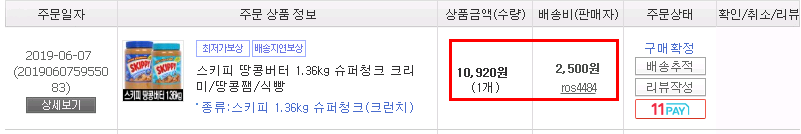 실제 구매 가격: 10,920 + 2,500 = 13420원
