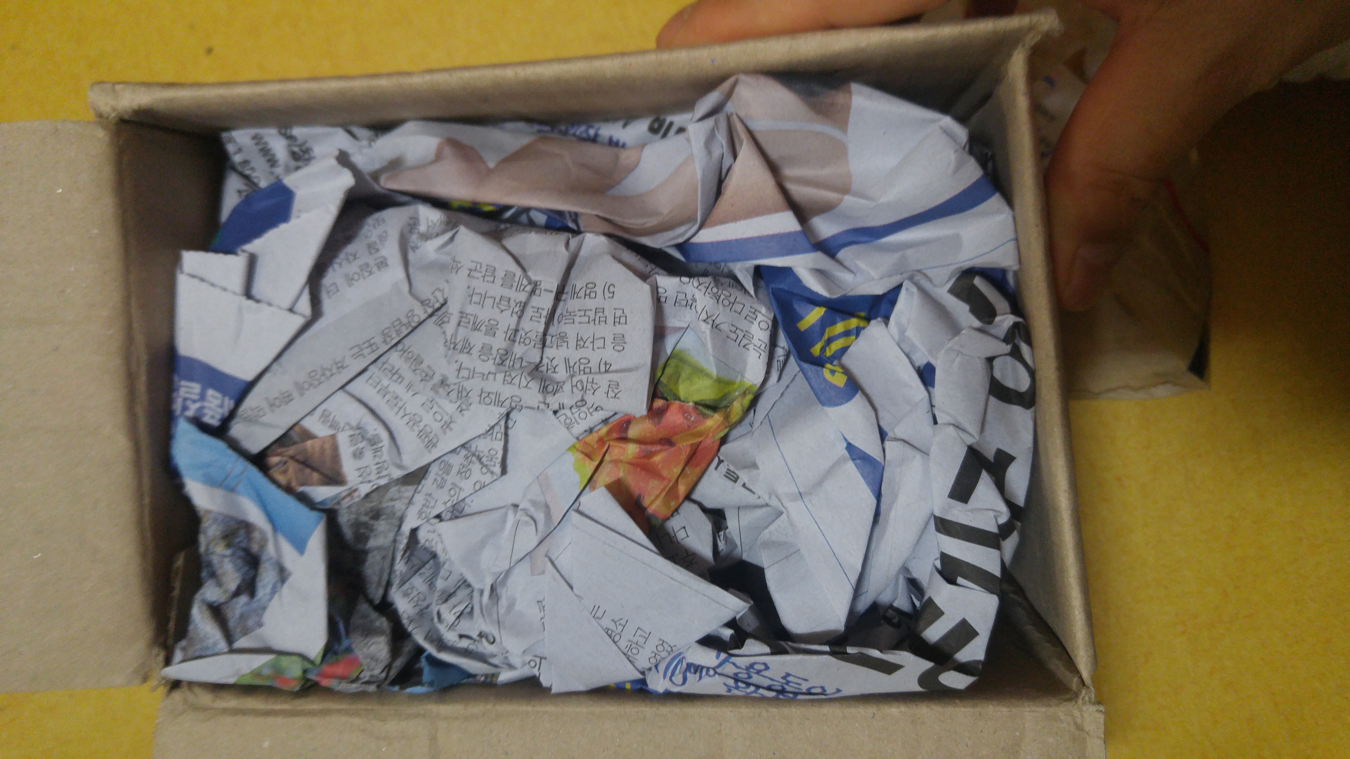 도착했는데 정식 쇼핑몰 주문에서 아래와 같이 '종이'로 채워진 건 이게 첨이었던듯.. 중고 거래에선 뭐 종이로 넣는 건 흔했는데, 장사하는 쇼핑몰에서.... 그 흔한 뽁뽁이는 아예 없었다.