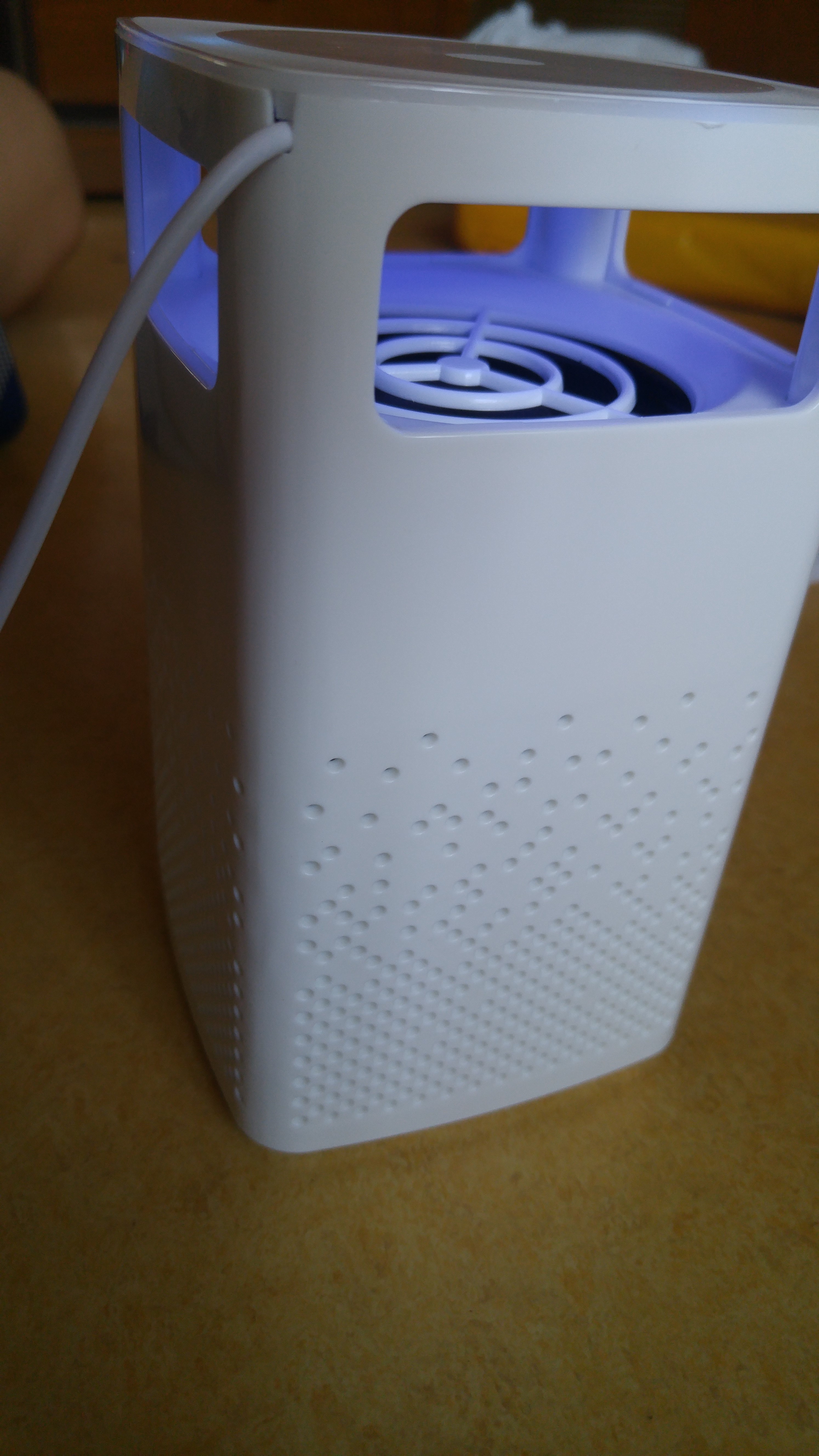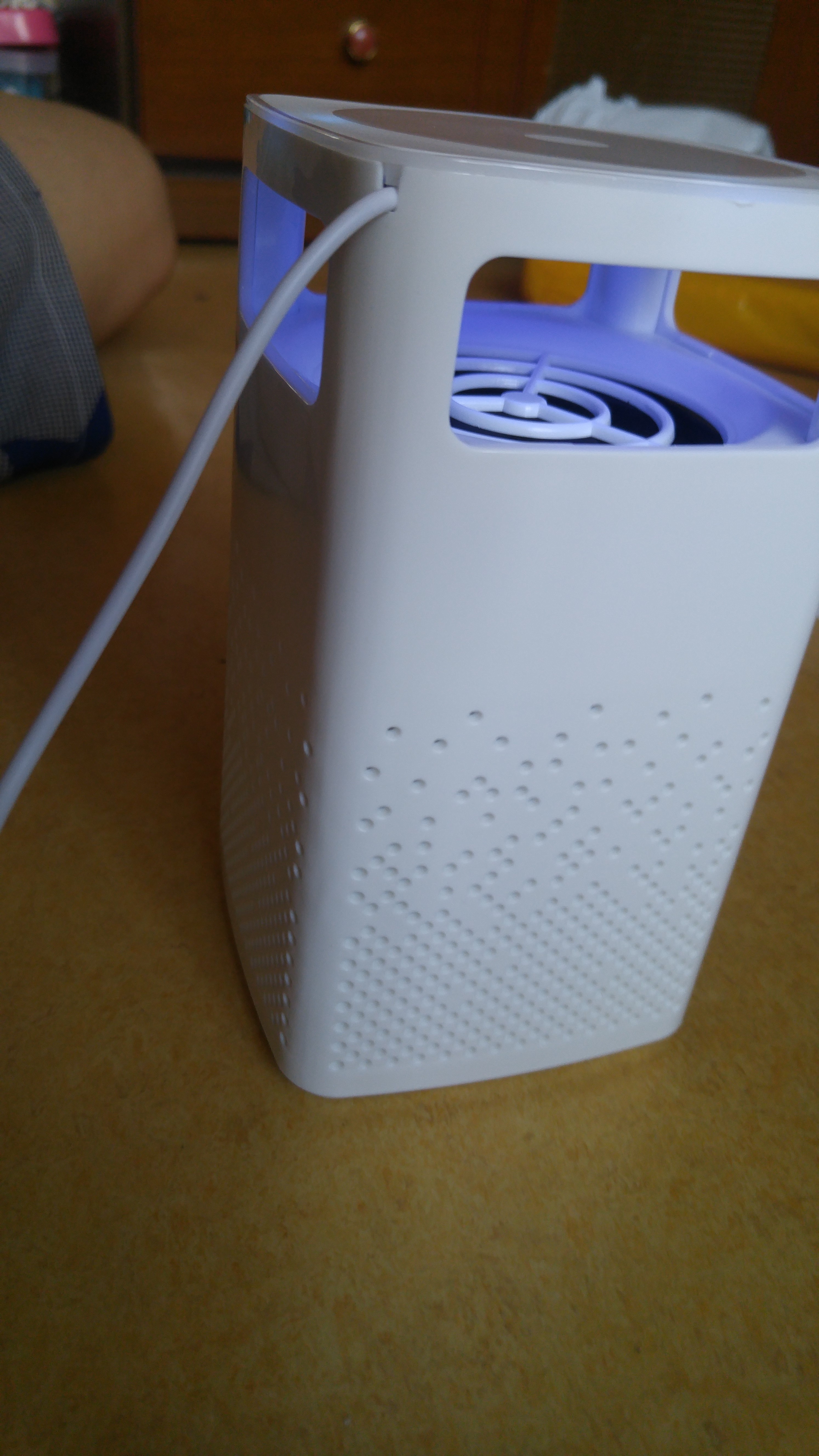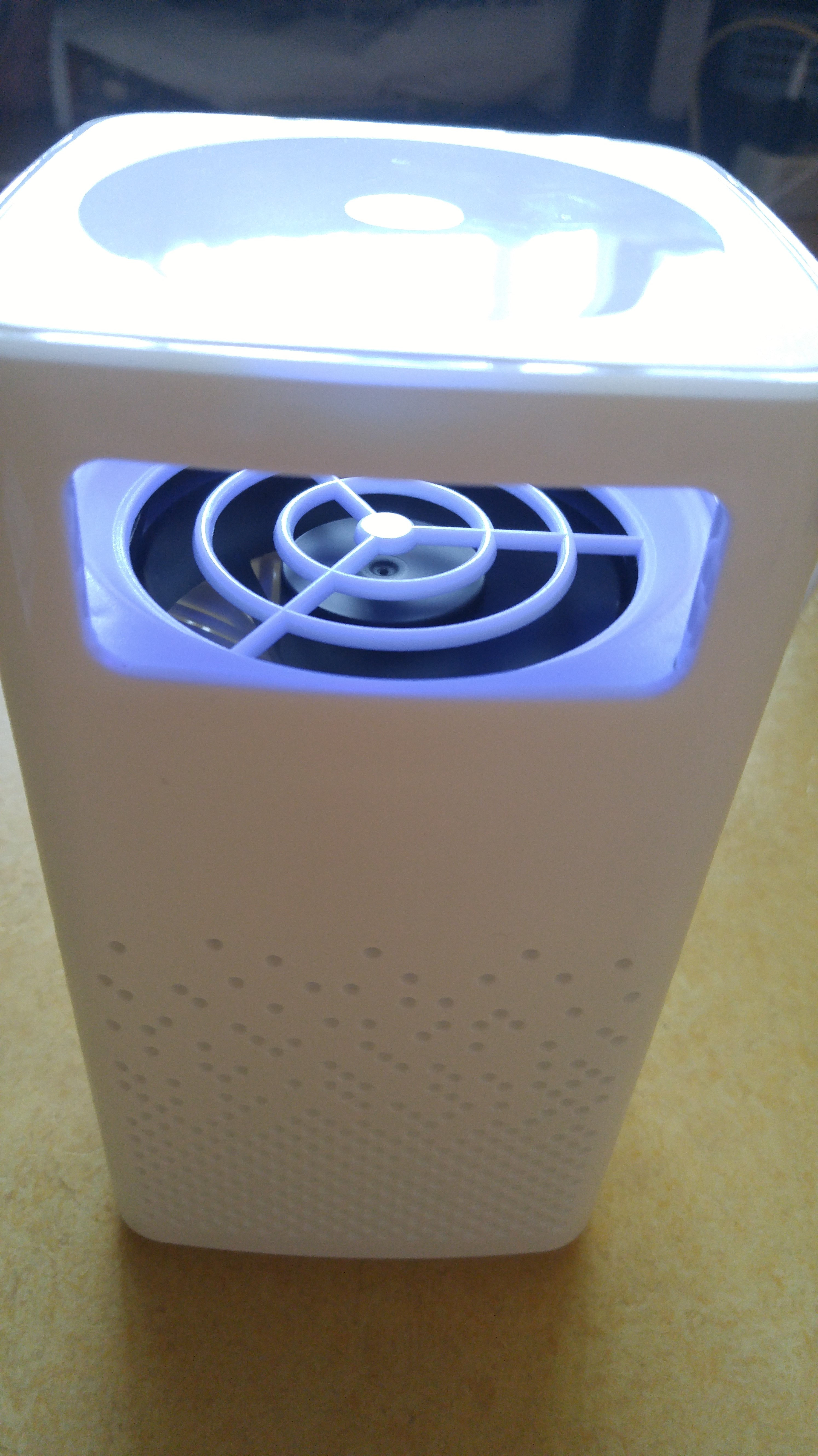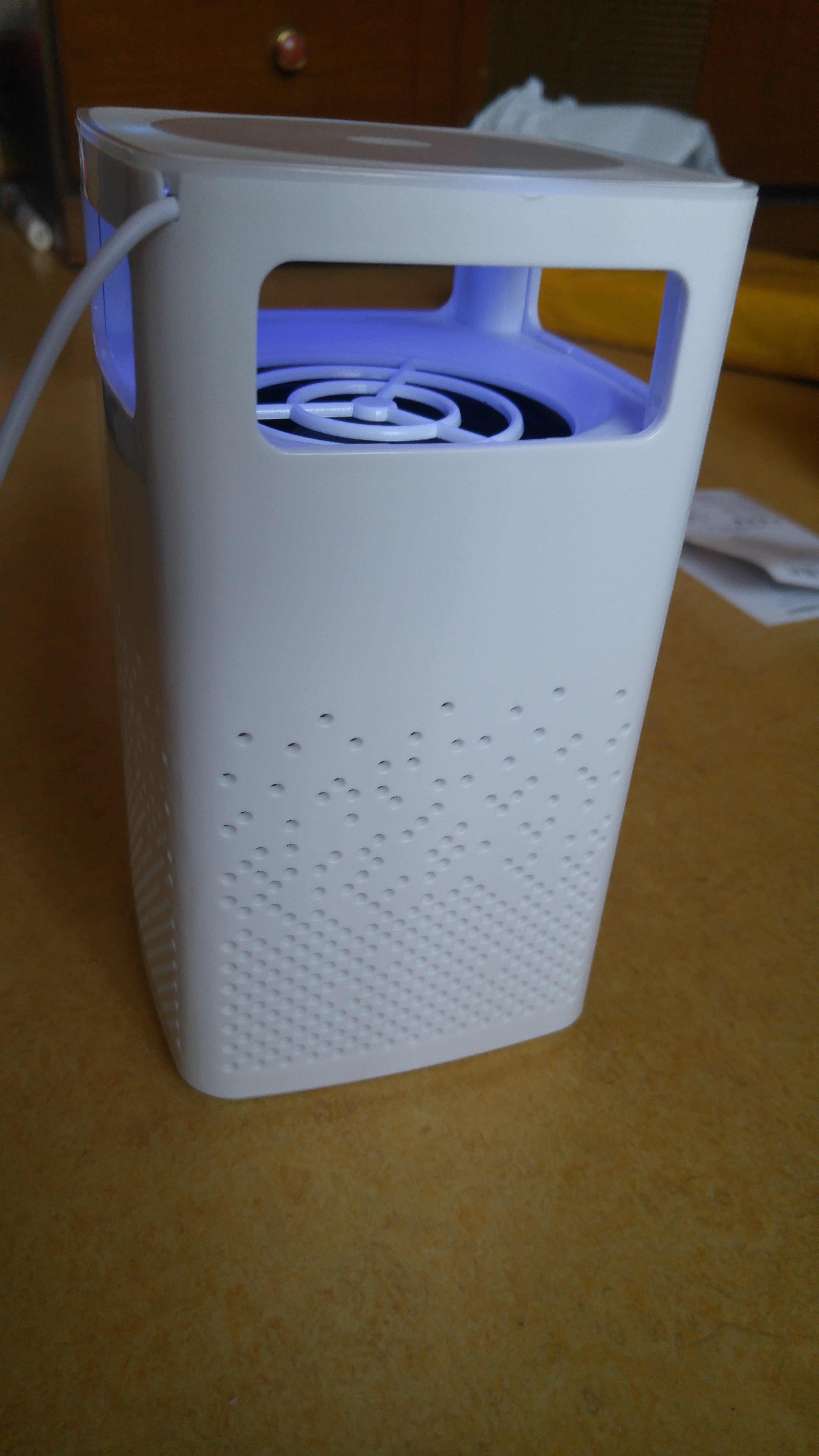 이제 USB에 연결해서 켜보았다. 팬 돌아가는 소리와 은은한 등이 켜지더라. 그외에 별 다른 건 없었다. 불 끄고 보면 분위기가 좋아 보인다. 이거 모기잡이 보다는 분위기를 은은하게 잡아주는 역할로, 소위 슬리핑 램프로 더 요긴하게 쓰이겠더라. 지금 켜서 놔두고 있는데 근처에 모기하나 얼씬하지 않는다.