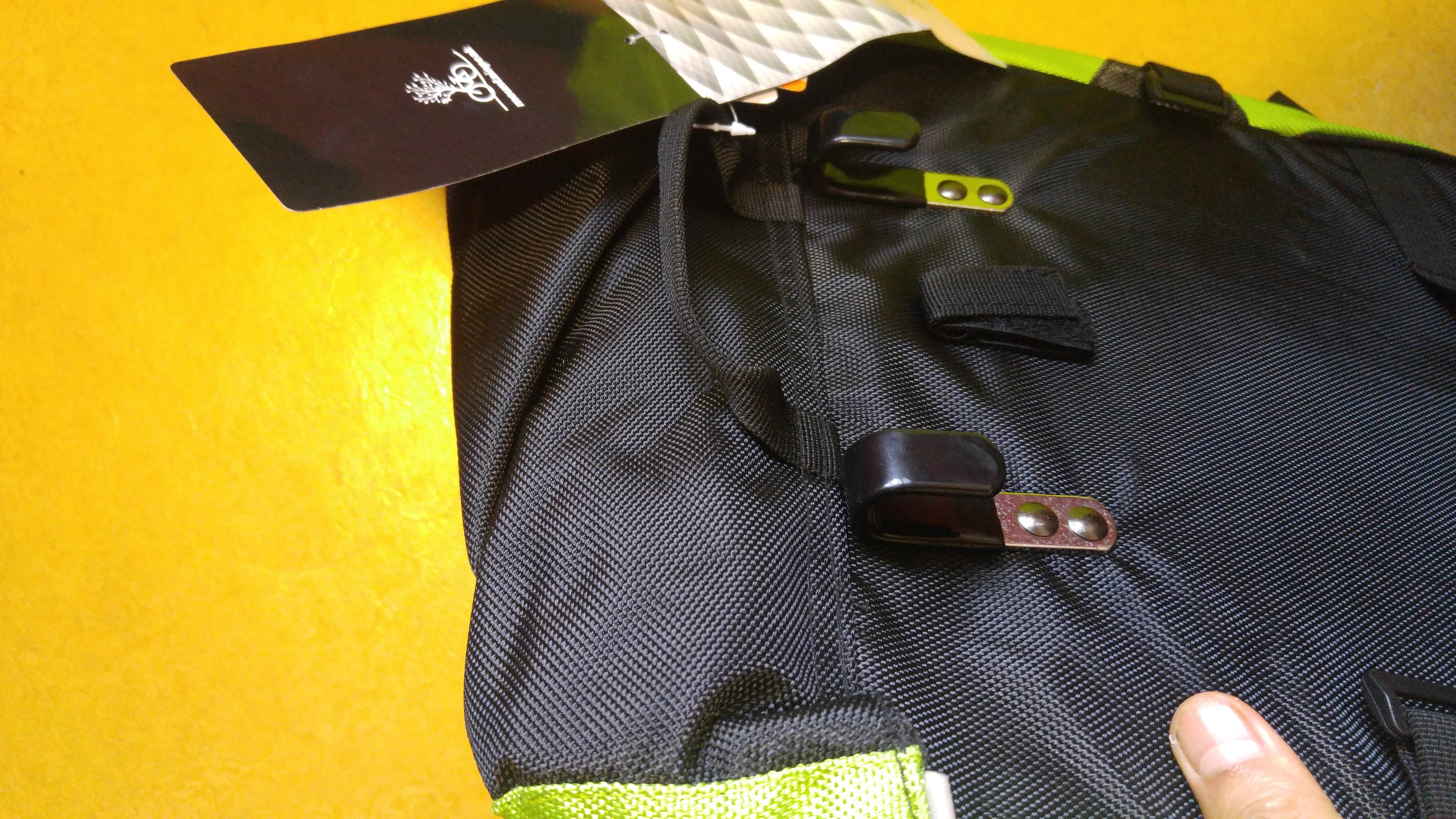 앞짐받이 설치한 모습. 저 고정 플라스틱 타이를 가지고도 제법 견고하게 고정할 수 있었다.
