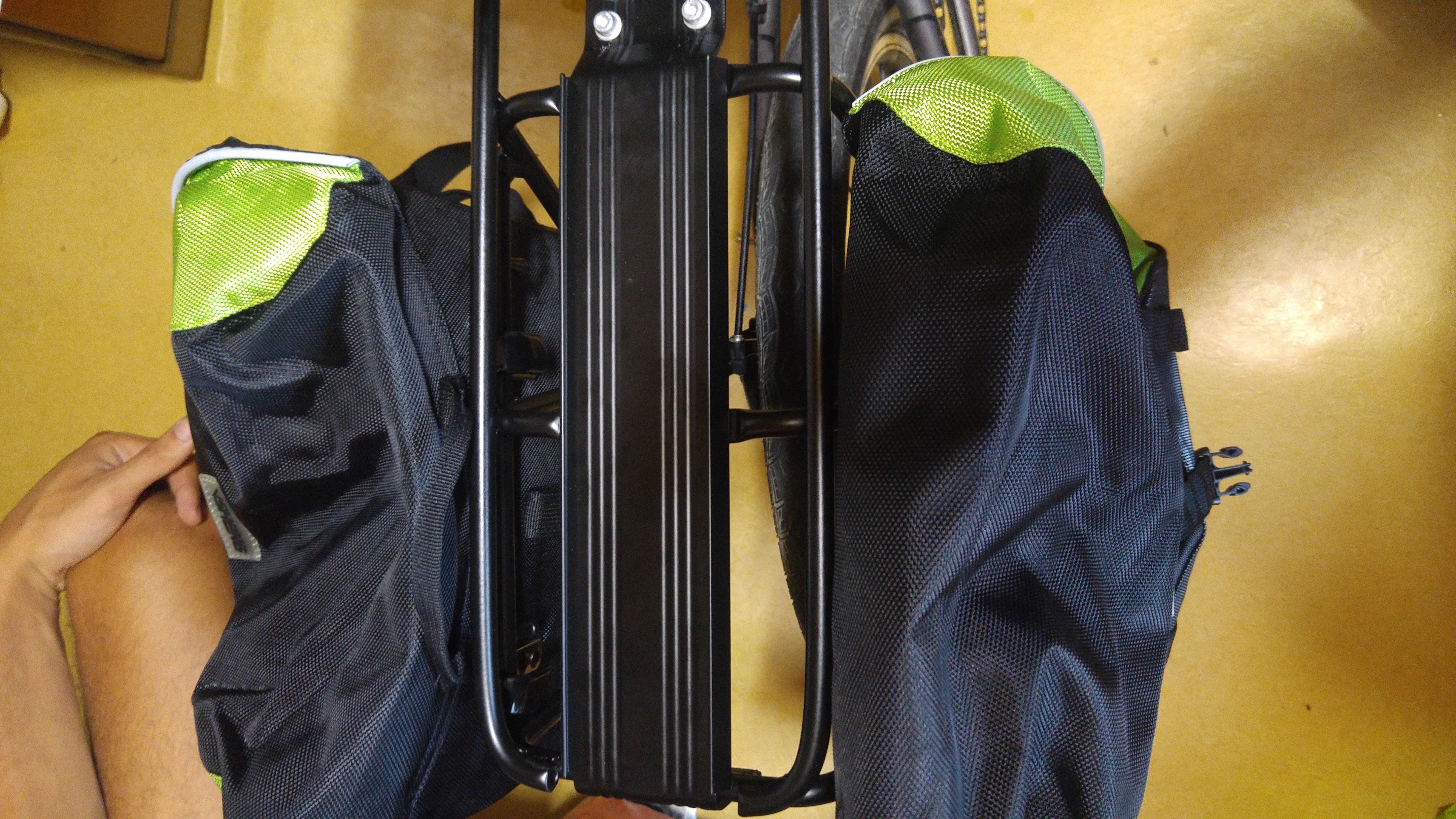 아래는 가방을 양옆에 설치한 모습인데, 아주 잘 설치되었음. 아주 약간 앞으로 기울어져 있어서 조금 걱정되긴 했지만 별 무리 없어 보였음.