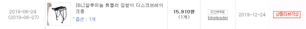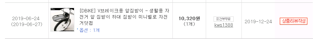 아래는 가방과 앞짐받이다. 요놈은 시간을 지켜서 제때에 도착했고(다음날 도착) 뒷받이는 하루 늦게 도착.