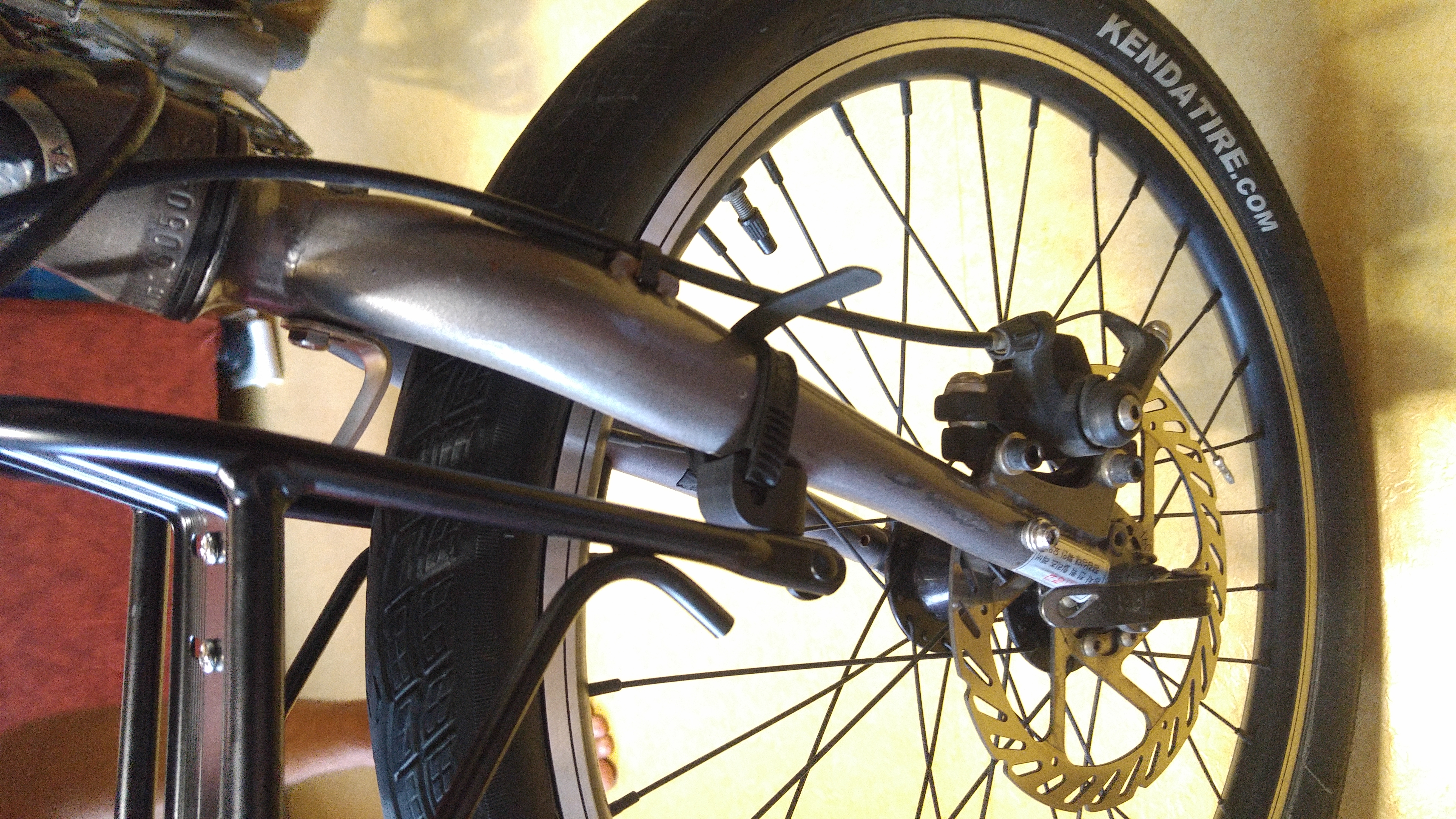 3. 앞 짐받이는 디스크브레이크인 경우도 장착은 가능하다. (카이블 타이 이용 고정)