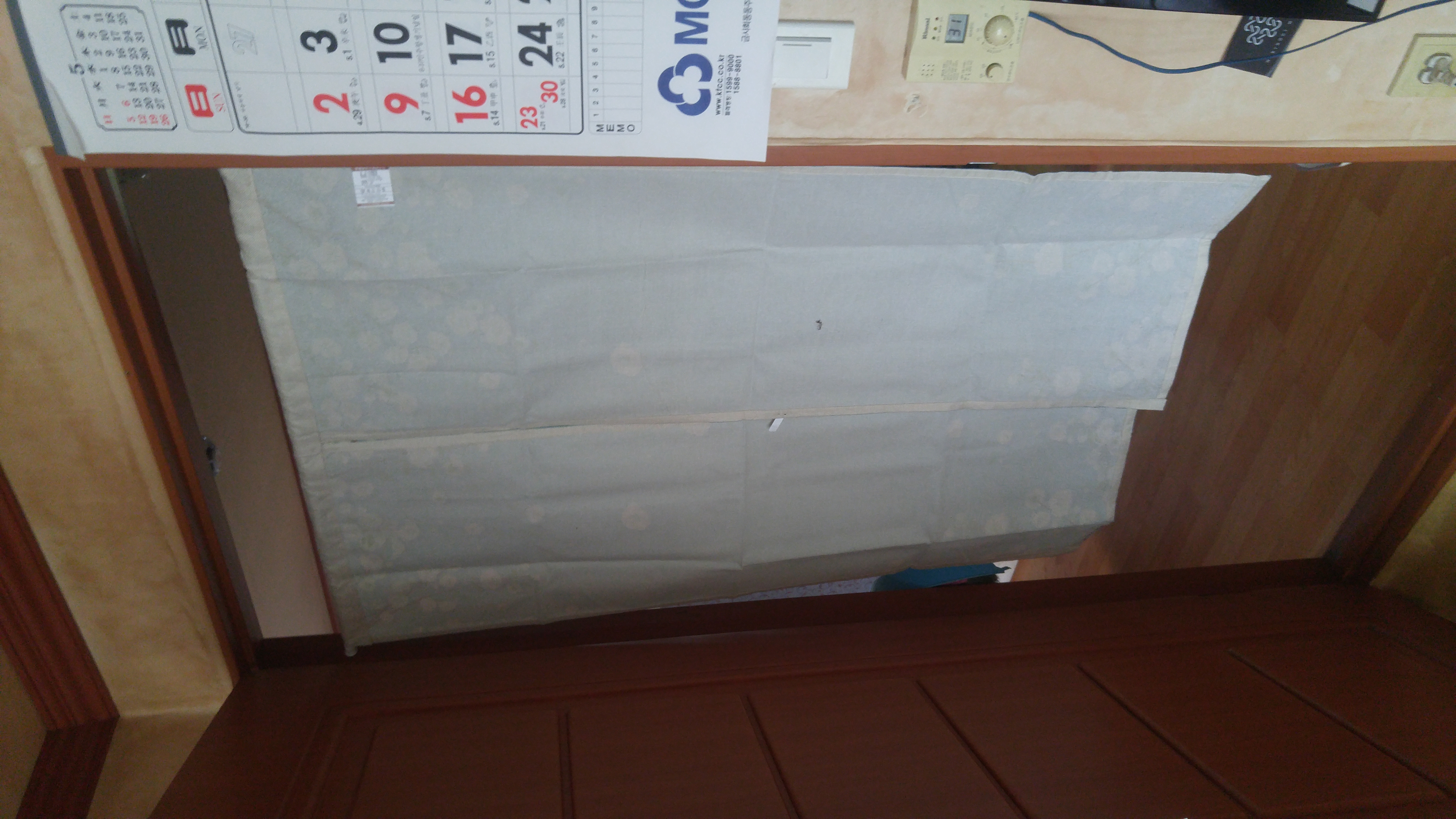 바닥에 펼쳐놓고 보니 나쁘지 않았는데 문에 달아 놓으니 디자인은 좀 별로였다.