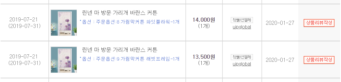 집에 손님을 받게 되었는데, 좁은 아파트에 무더운 여름에 문은 열어둬야 하고, 프라이버시는 지키고 싶고, 그래서 사게된 방문 커튼. 지금은 잘샀다는 생각으로 잘 쓰고 있다. 디자인도 좋은 것 같고...