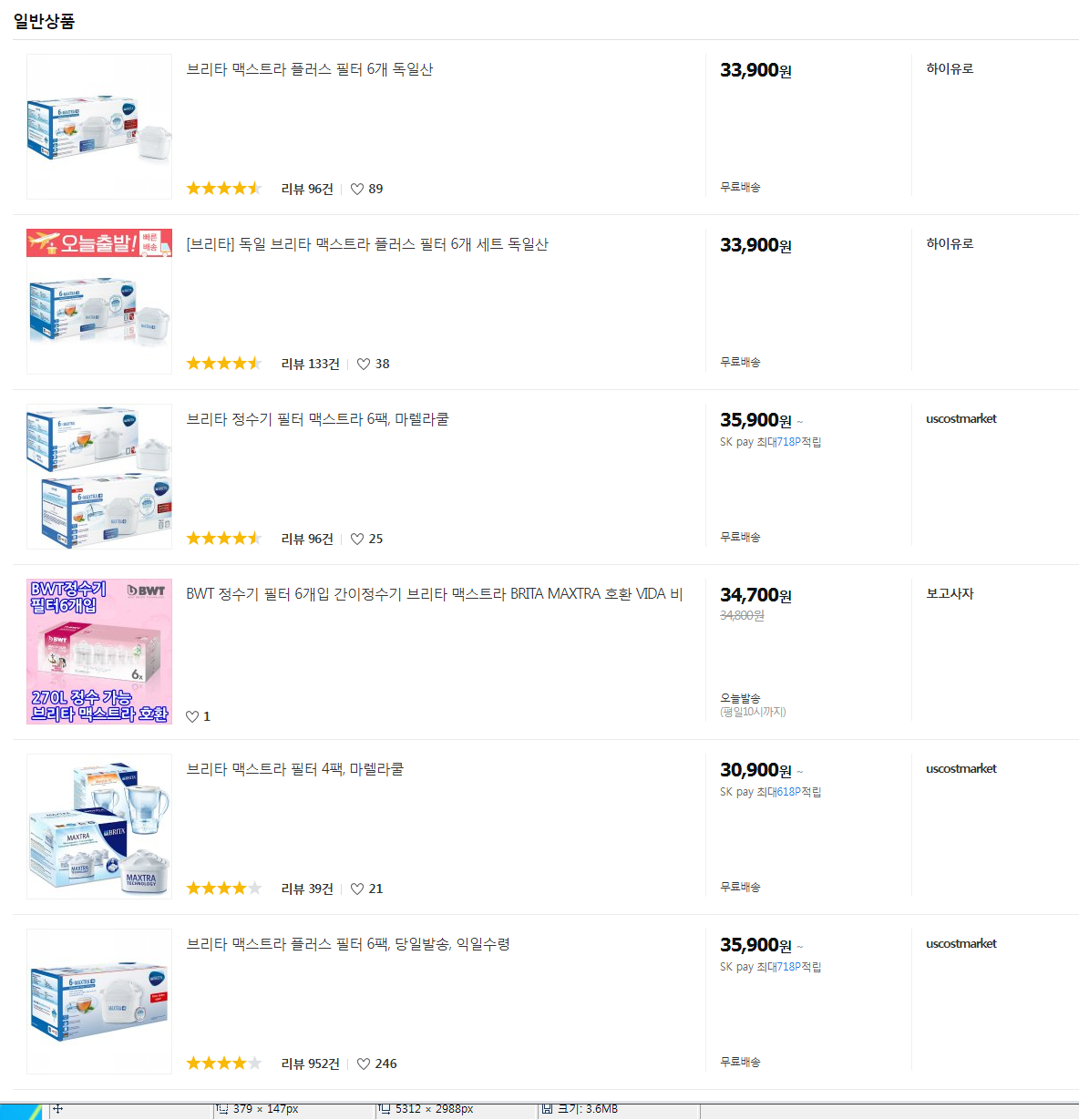 그러나 한국의 물이 다른 데에 비해서 깨끗하니 한 2개월 정도 쓰는 것으로 상정해서 구입하기로 했다. 작년 2018년 9월 경에 구입해서 2019년 7월 경에 구입을 했으니 6개 필터로 거의 1년을 썼다라고 보면 된다. 그래서 이번에도 6개를 구매하게 된 거고...