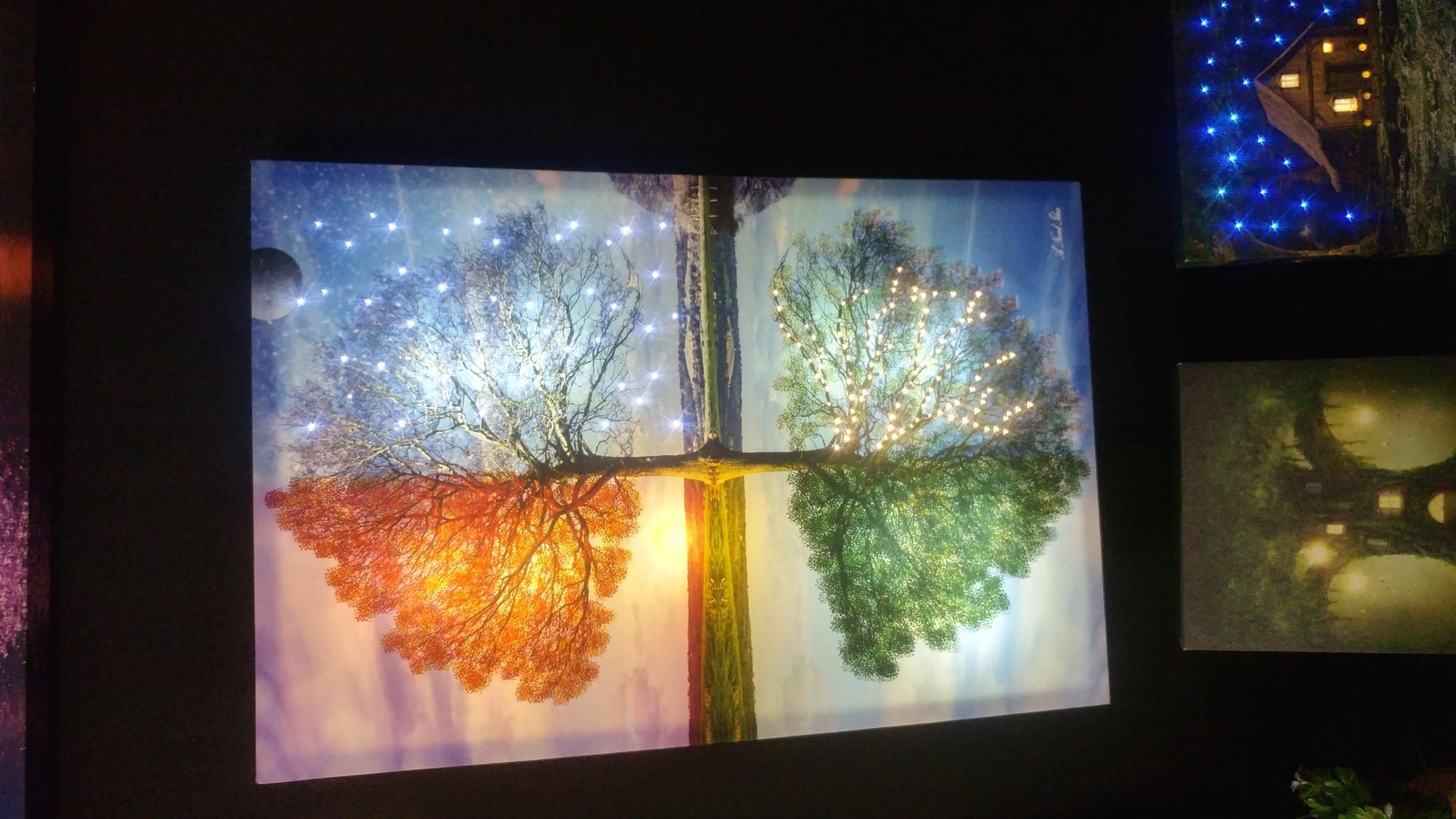 아래 사진 잘 나온 것 봐라.... 그림에 등을 넣어서 반짝이게 해 놓았더라. 좋은 아이디어라고 본다. 불끄고 이걸 켜 두면 보기 참 좋을듯...