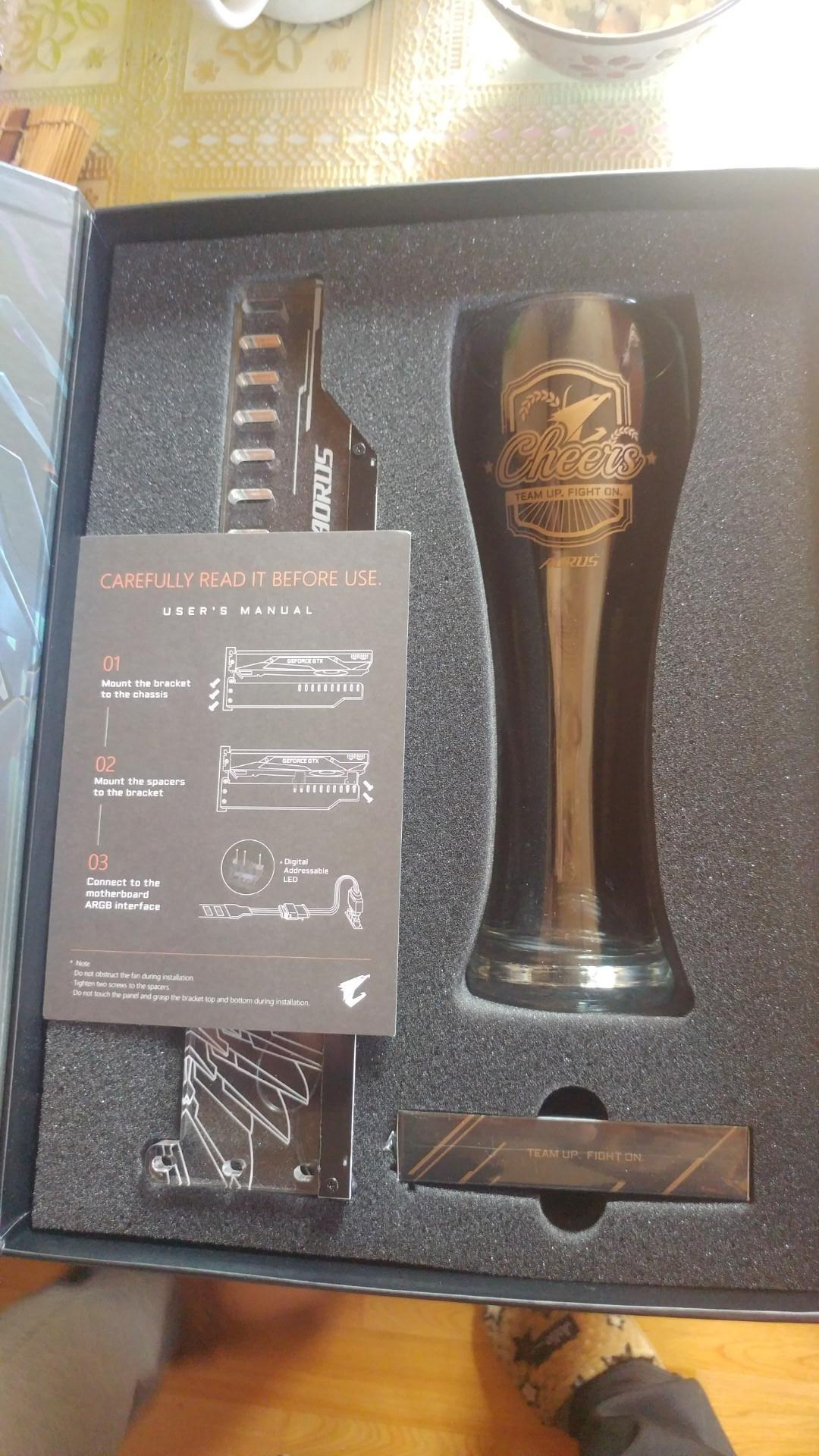 안을 까보니, 맥주잔, 그리고 자 같이 생긴 건, 어로스 그래픽 카드에 장착하는 장식용 LED 등이더라고