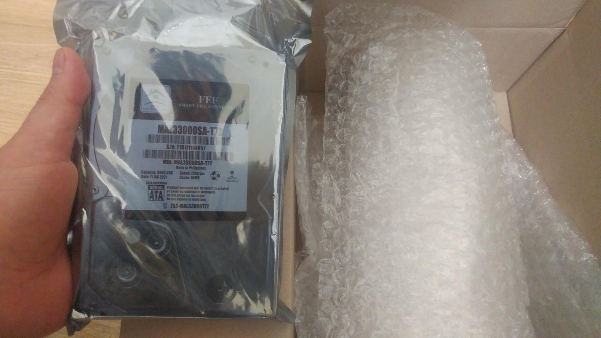 : HDD는 특히 포장에 민감한데, 충격을 받으면 안되거든. 워낙 정밀한 부품이라. 특히 헤드와 디스크의 정열 같은 게 아주 정밀해서 조금만 어긋나도 바로 고장이니까. 그래서인지 뽁뽁이가 역대급으로 들어가 있더라고.
