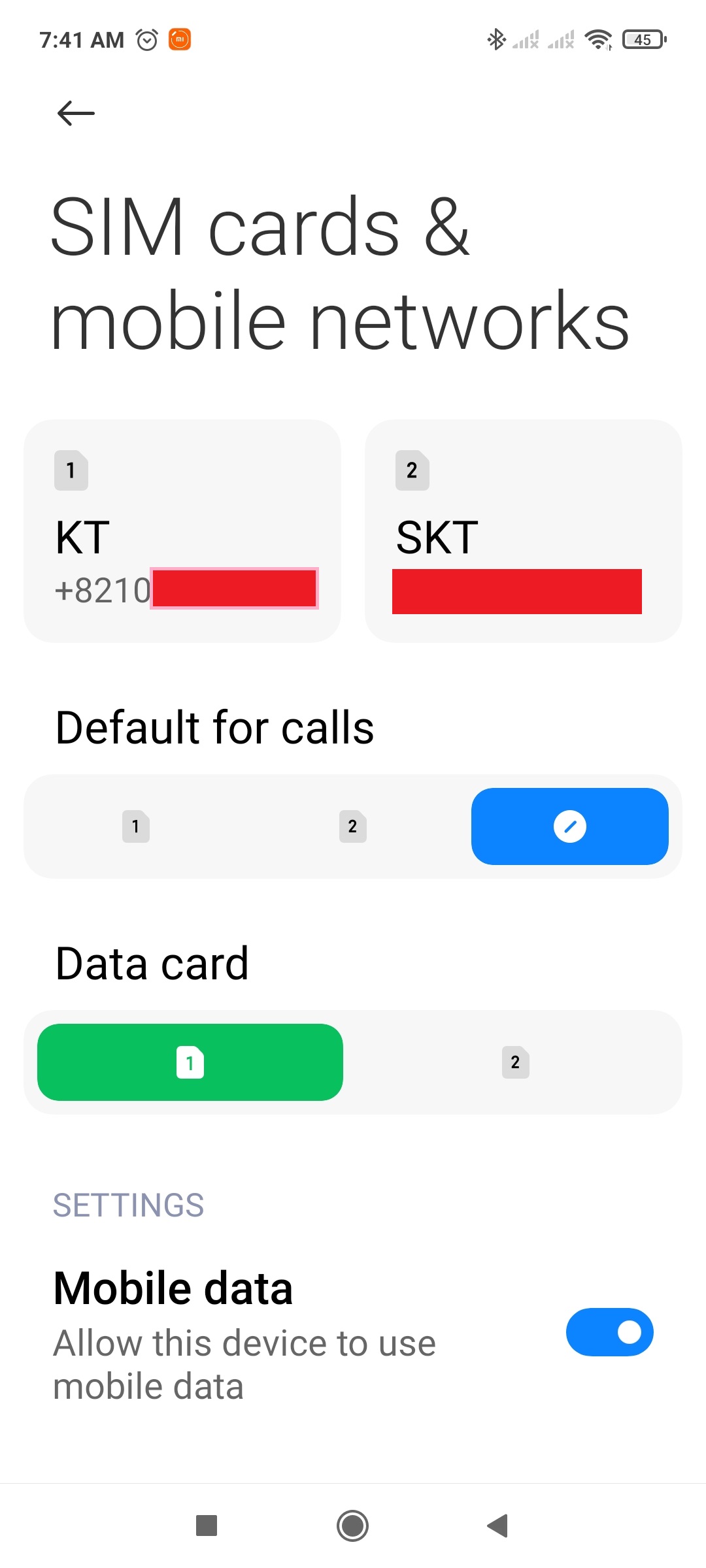 그런데 설정에는 아래처럼 통신사와 전화번호가 바로 인식되더라고