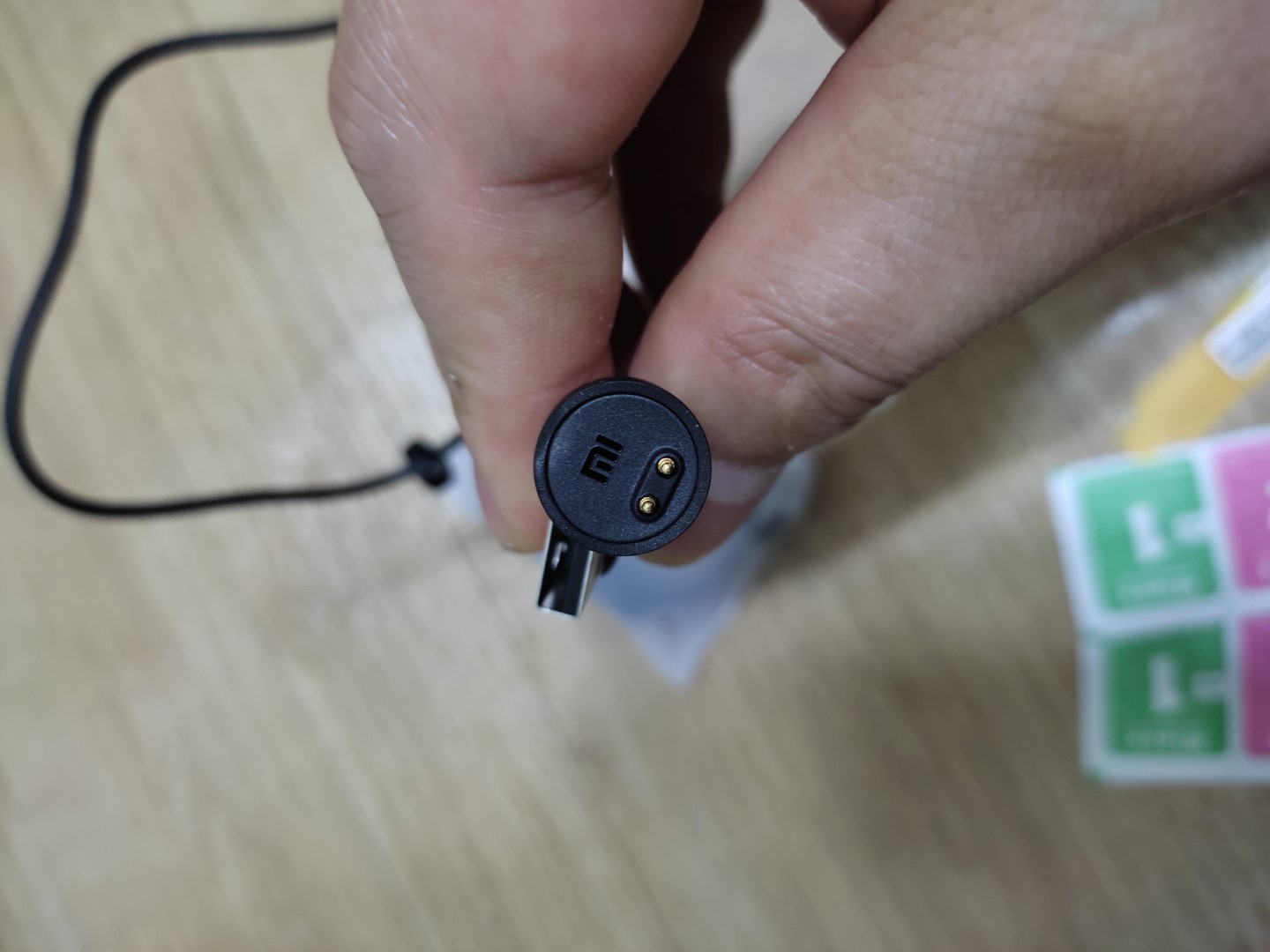 위가 충전 케이블인데, 자석 방식이다. 자력은 충분히 넘치게 강해서 딱 잘 달 붙어서 편리한 편.