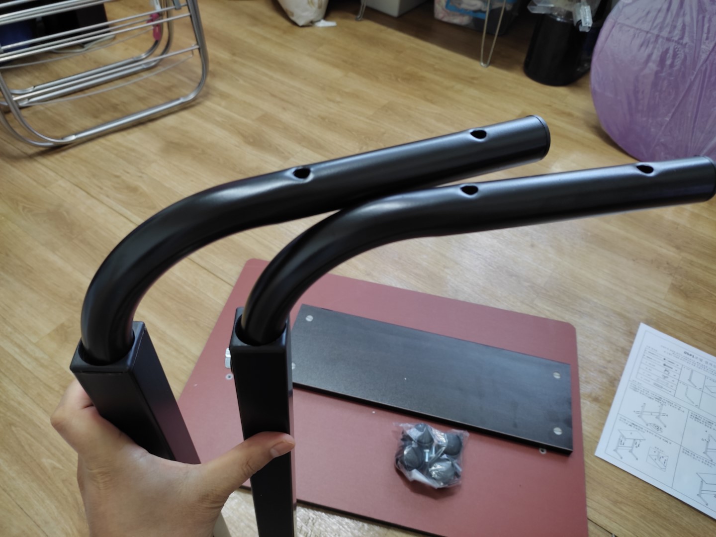 나무 철로된 내구성 제품일텐데, '취급주의'라고 되어 있네. 부러지거나 한 사례가 있나보네. 뭐 저렇게 해놓는게 택배원이 그래도 좀 신경써서 배달해줄테니까하는 생각이 들더라고. 택배는 제품 특성에 맞게 역시나 묵직한 느낌.