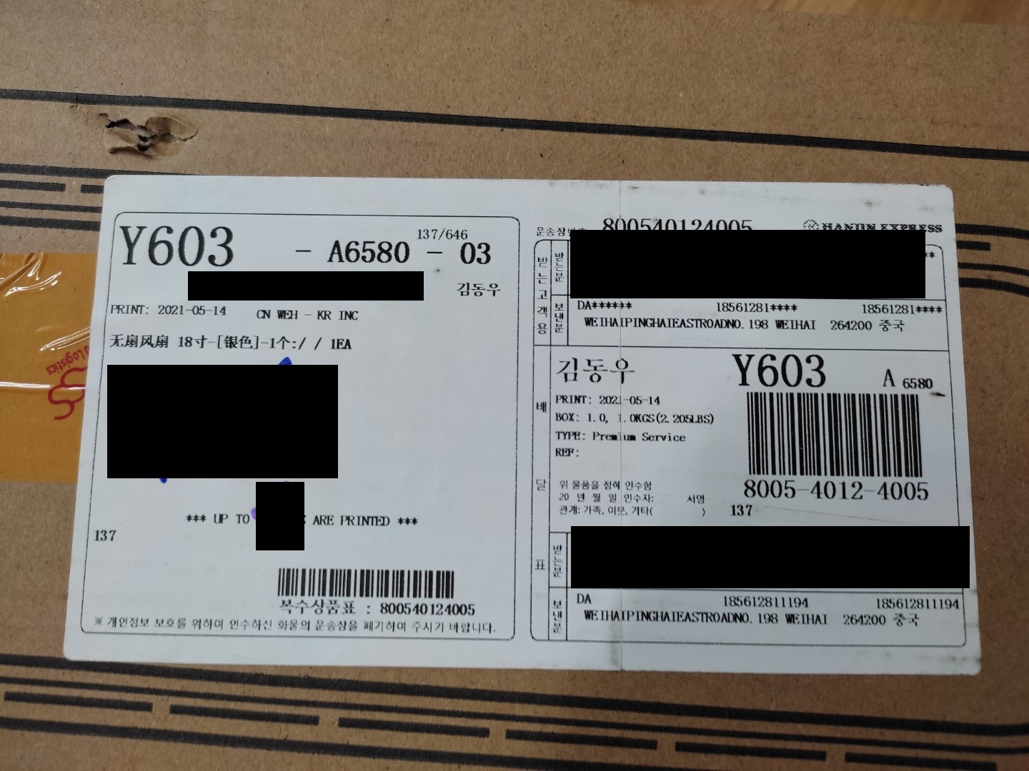 덩치가 좀 있는 놈이라고, 한진으로 왔더만. 작은 놈은 주로 CJ로 오는 것 같고. 이렇게 좀 덩치가 있는 것들은 다른 회사를 이용하는 것 같더라.