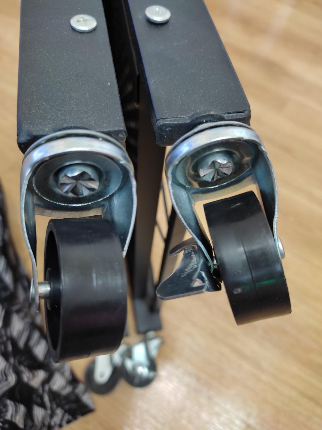 조립할 때 주의할 점이 바로, 바퀴 2개에 회전 고정 레버가 있다는 거, 그래서 앞부분과 뒷부분 즉 바퀴 고정 레버가 있는 바퀴를 어디에 달아야할지 미리 생각하고 조립해야 한다는 거다. 난 아무 생각 없이 조립했다가 나중에 바퀴 떼어내고 다시 조립했다.