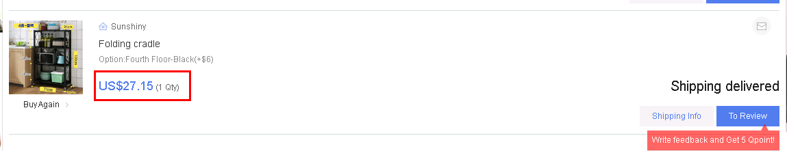 가격: 총 27.15 USD, 5월 11일 주문, 5월 28일 도착. 총 17일 소요.