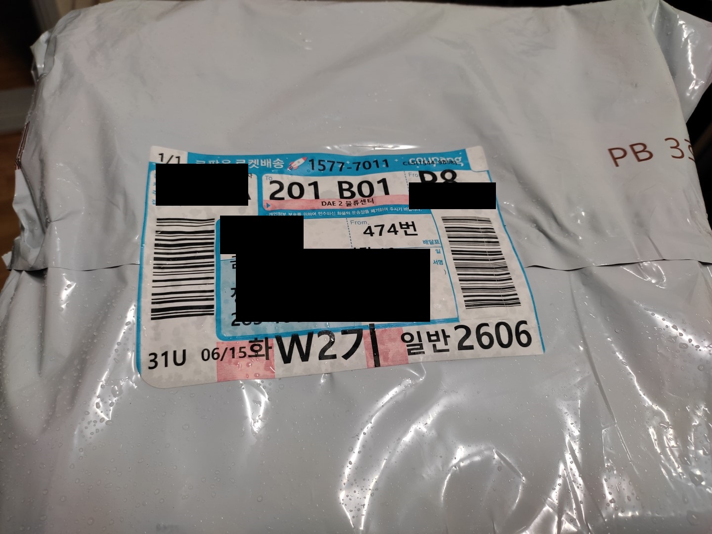 쿠팡 배송, 비가 와서. 이런 비닐 포장이 적절한듯하네. 비가 와도 되니까.. 그저 플라스틱을 너무 많이 사용하는 것 같아서 환경이 조금 걱정될 뿐....
