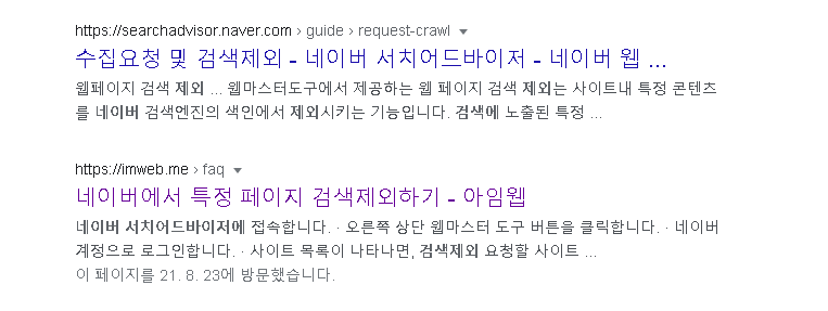 네이버에서 특정 페이지 검색제외하기