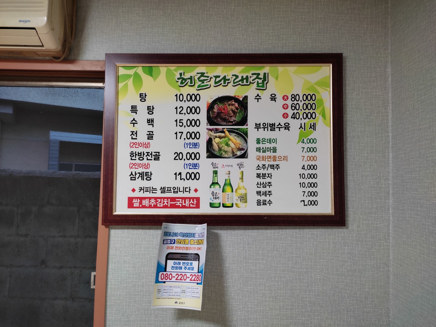원래 1만천원했던 모양인데, 지금은 1천원 올라서 1만2천원이다. 다른 곳보다 싼 건 확실하다. 식당 내부는 오래되서 그런지, 깔끔하고 깨끗해보이지는 않았어.