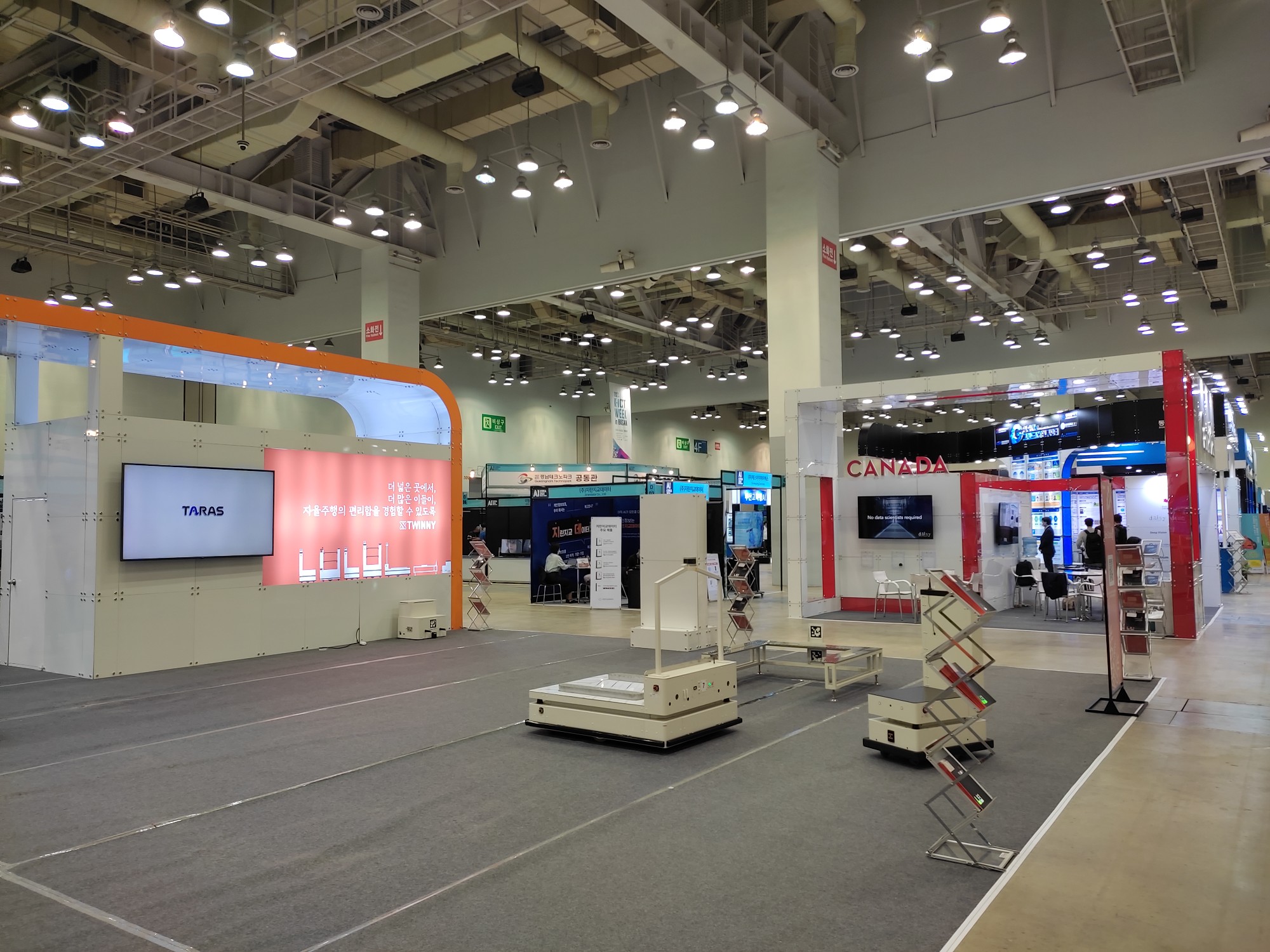 바로, 아래가 제대로된 하드웨어를 갖췄을 때가 아닐까? 공장에서 자율로 이동가능한 여러 기기들이 전시된 곳.