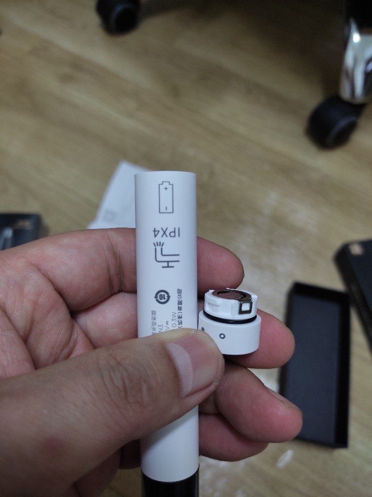 생활 방수 표시가 되어 있고... 아래 보면 고무 패킹도 보이네... 구조는 아주 단순한 쪽에 속하고... 검은색인 비싼 버전이 충전식인가?