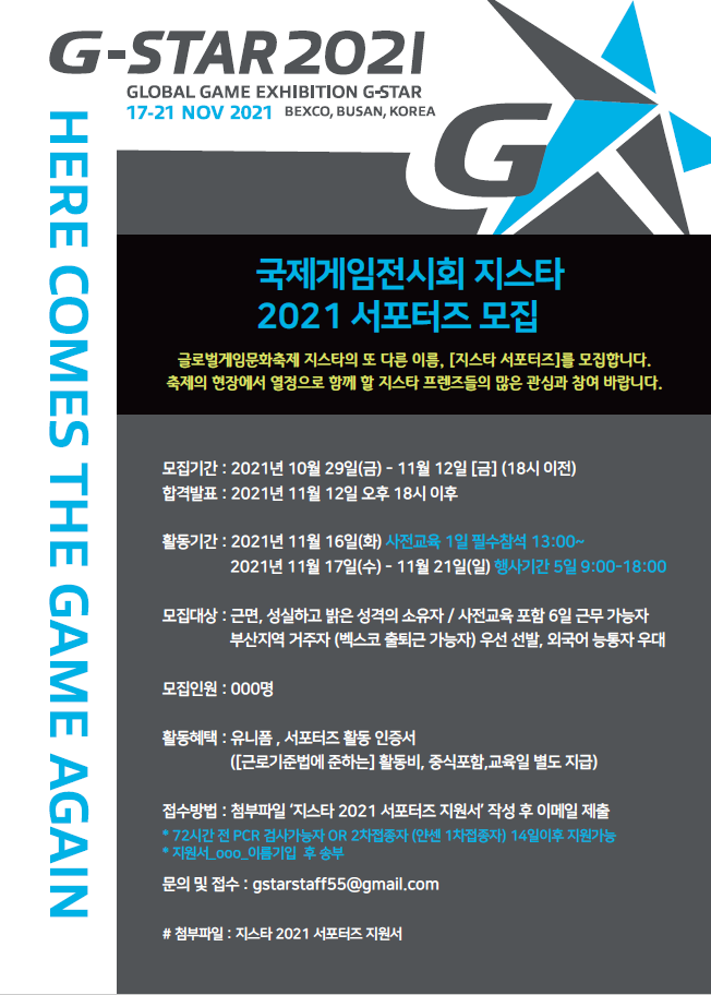 | 지스타 2021 오프라인 개최 확정 (0) | 2021.10.17 |