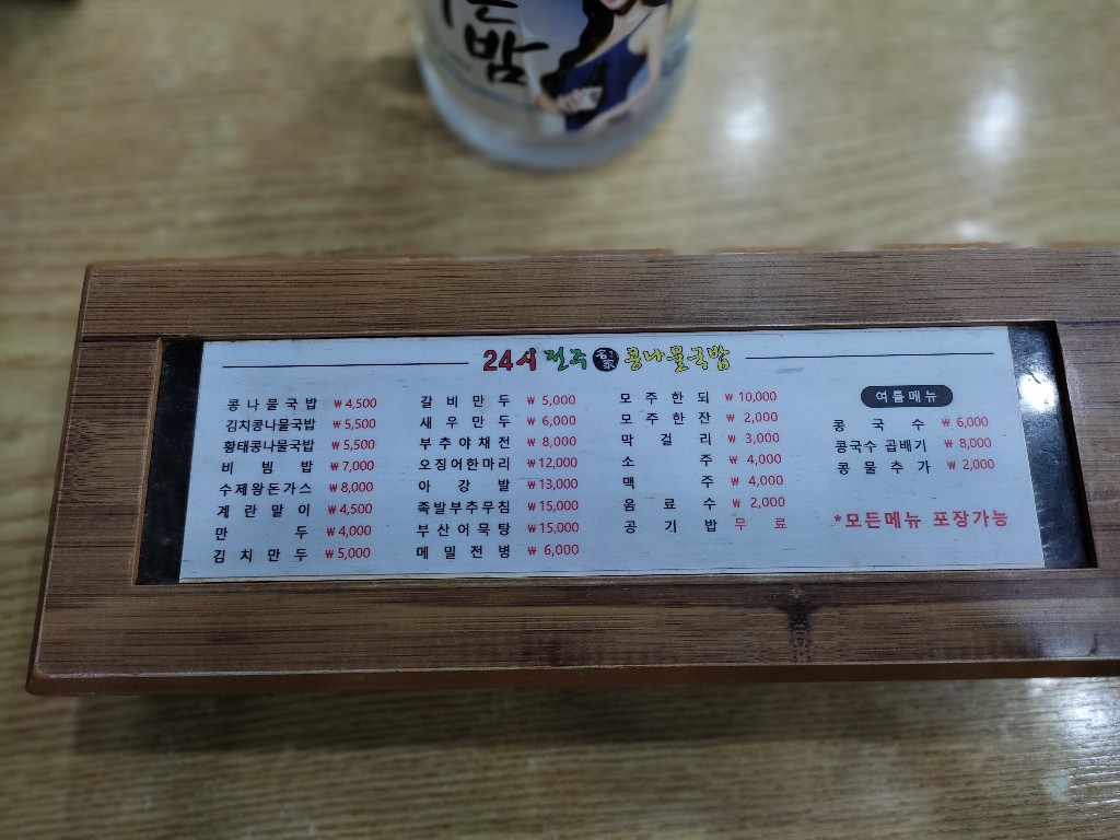 적당한 가격에 좋은 음식으로 배를 채우는 일이 정말 힘들더라고. 특히 유명 관광지는 더욱 더. 가격이 후덜덜!!! 그 정도 가격이면 내가 사는 부산에선 마음 껏 먹을 수 있거든!! 올레 시장에 잠시 들렀었는데 횟집이 아주 잘되고 있더라고. 싱싱한 횟감을 바로 그 자리에서 떠 주는데, 문제는 가격이 ~~~ 제주도에서 직접 잡은 생선이라서 그런지... 나에겐 그림의 떡. 유명 관광지 같은 곳에선 오히려 맥도날드, 롯데리아 같은 패스트푸드 체인점이 오히려 싸게 먹힐 정도. 물론 이런 음식은 건강하지 않을 뿐더라.... 그러다 우연히 서귀포시에서 4천5백원짜리 '콩나물 국밥'을 발견하고 눈물을 흘릴 뻔했다.