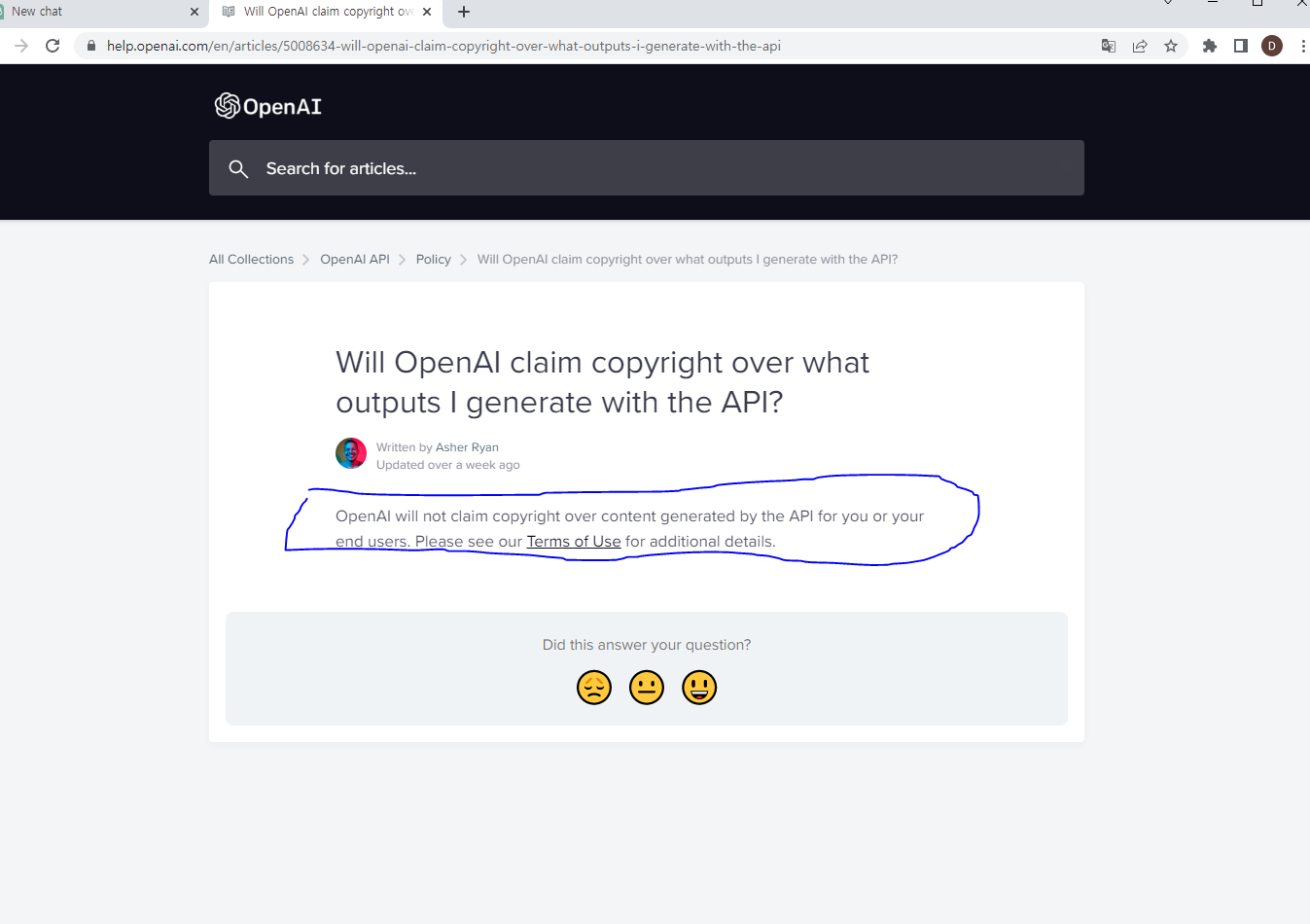 이 블로그 글을 쓰기 전에 일단 확인해봐야할 것이 있었다. 그건, ChatGPT로 활용한 결과물에 대한 저작권 문제였다. 그래서 해당 홈페이지에 들어가서 알아보니, "문제 없다" 였다. 첫 번째 질문으로 영어로 해봤는데, ======================대화 내용 시작=================== 나: "What do you recommend me to do when I get so bored?"(지루할 땐 뭐하는 게 좋을까?) AI: If you're feeling bored, here are a few suggestions that you can try(지루할 때 할 수 있는 몇가지..) Engage in a creative activity: Try drawing, painting, wr..